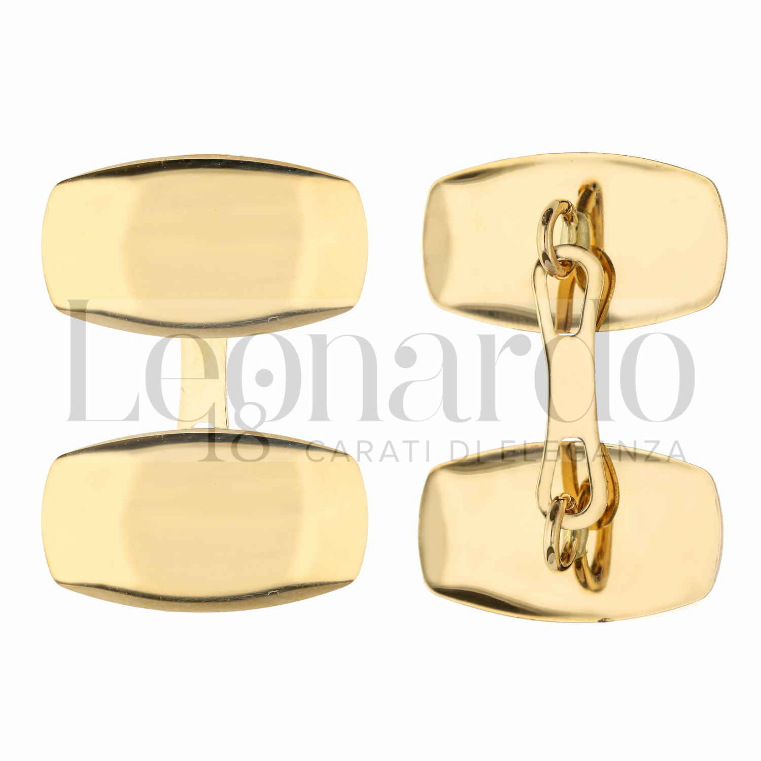 Gemelli doppia lastra, forma rettangolare, finitura lucida, in Oro Giallo. Articolo Imbustato con Tara da Gr. 1,25