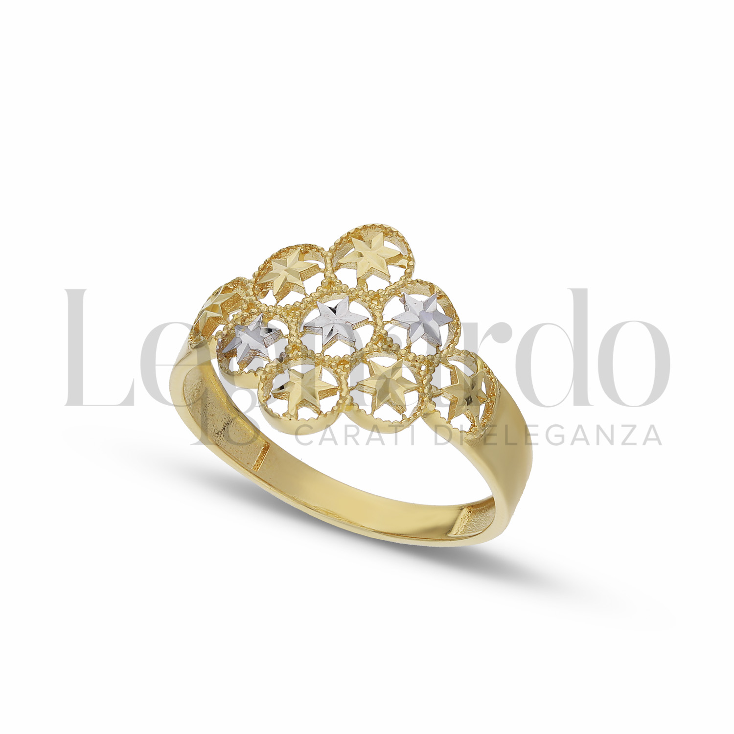 Anello da Donna, realizzato con lavorazione 3D, con zirconi bianchi in Oro Giallo e Oro Biano