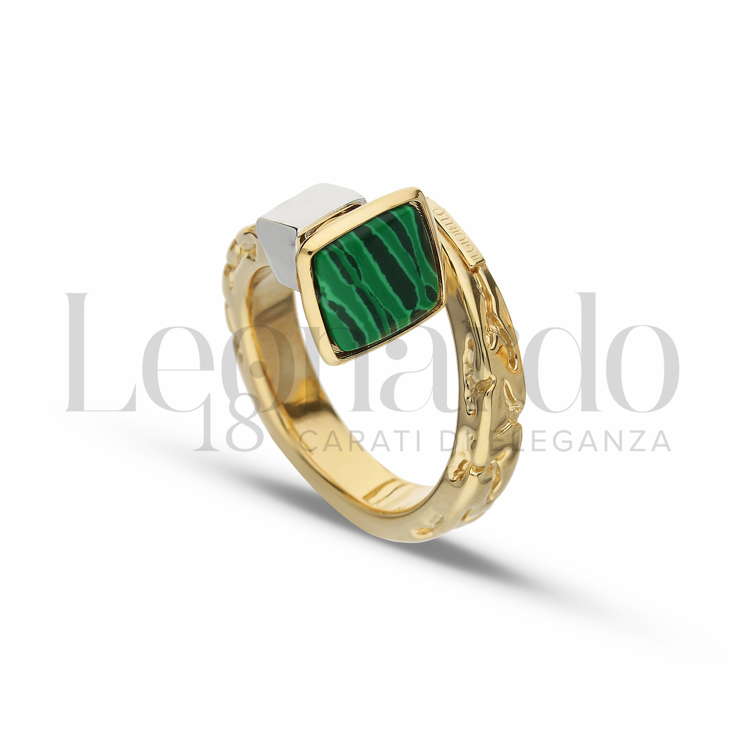 Anello Chiodo da Donna con Malachite, in Oro Giallo e Oro Bianco.