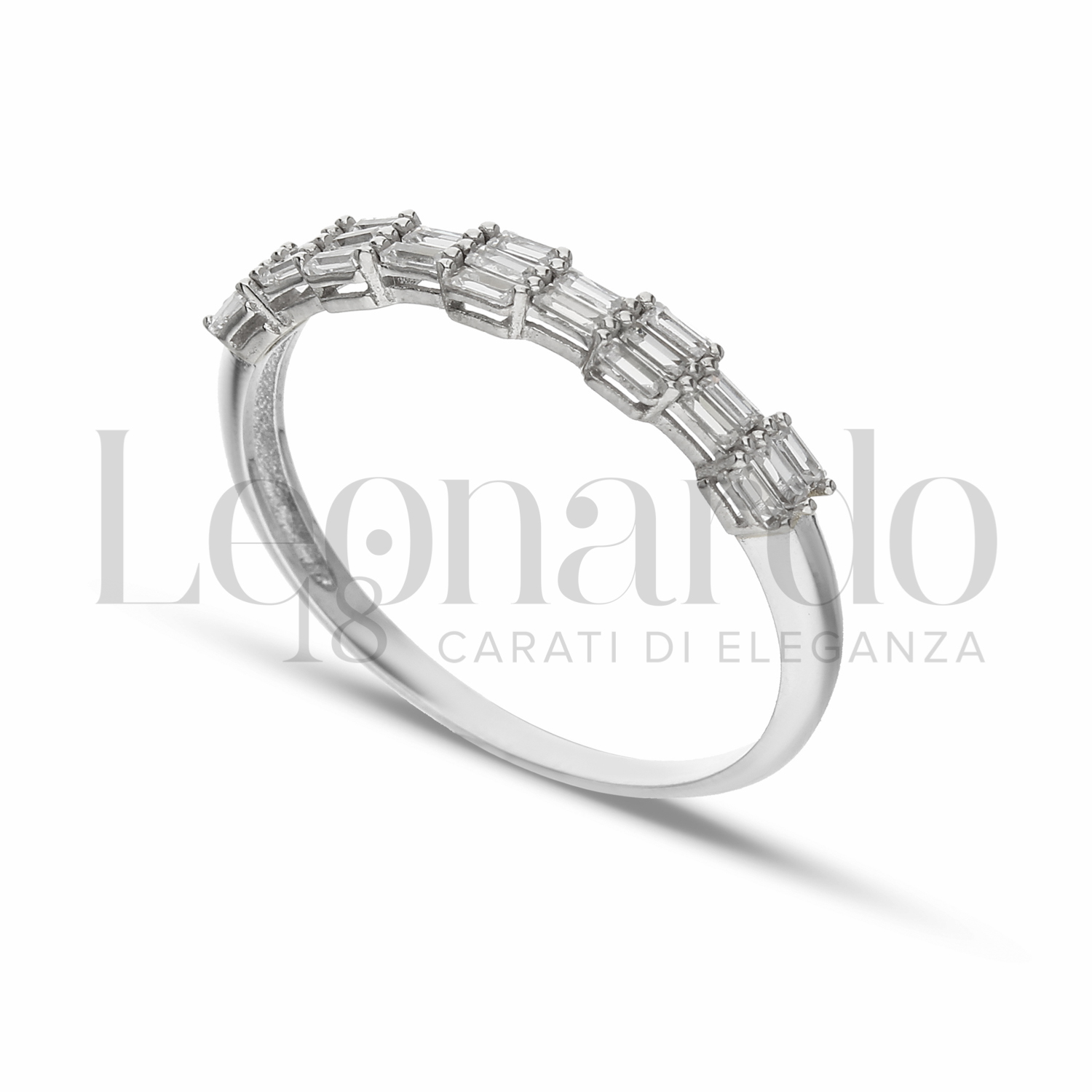 Anello da Donna, Collezione Sposa, con centrale di zirconi bianchi, in Oro Bianco.