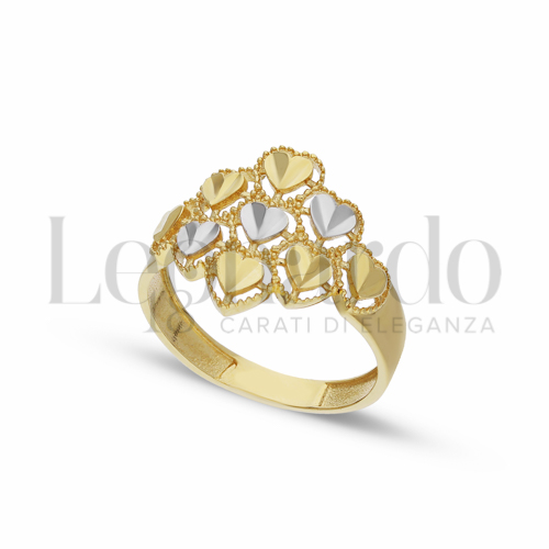 Anello da Donna, realizzato con lavorazione 3D, con zirconi bianchi in Oro Giallo e Oro Biano