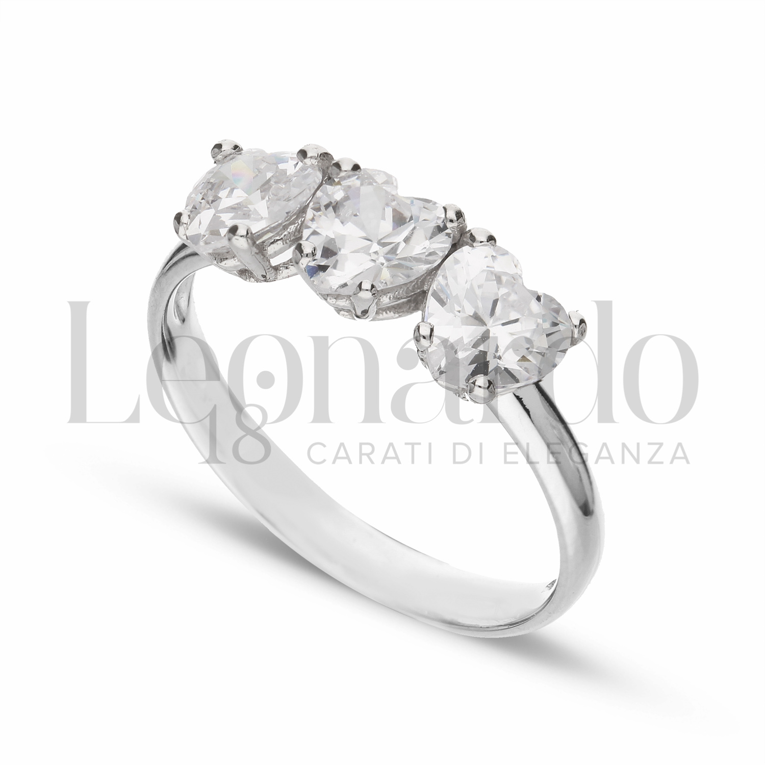 Anello con Cuori Bianchi da Donna in Oro Bianco.