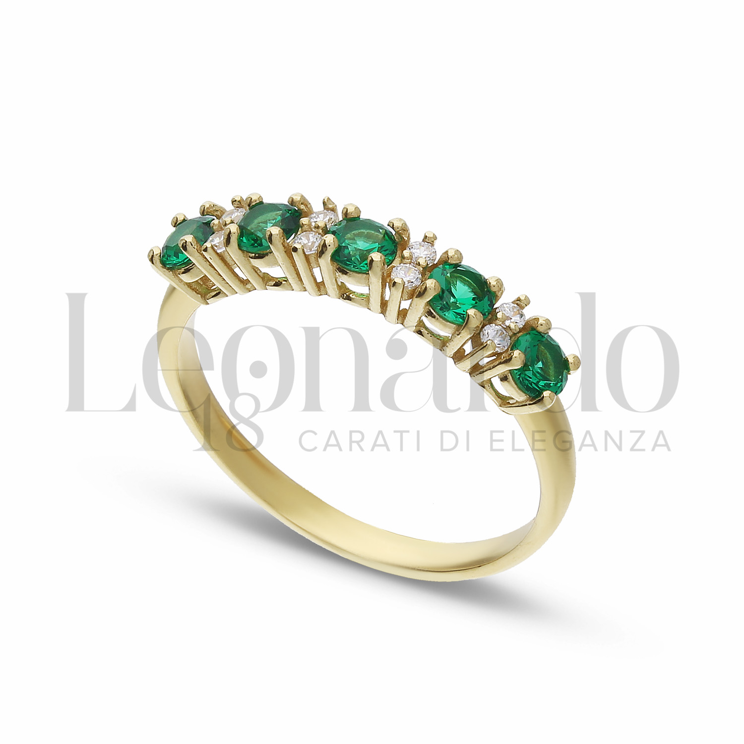 5 Pietre Modello con Pietra di Colore Verde e zirconi bianchi in Oro Giallo da 2,1gr.