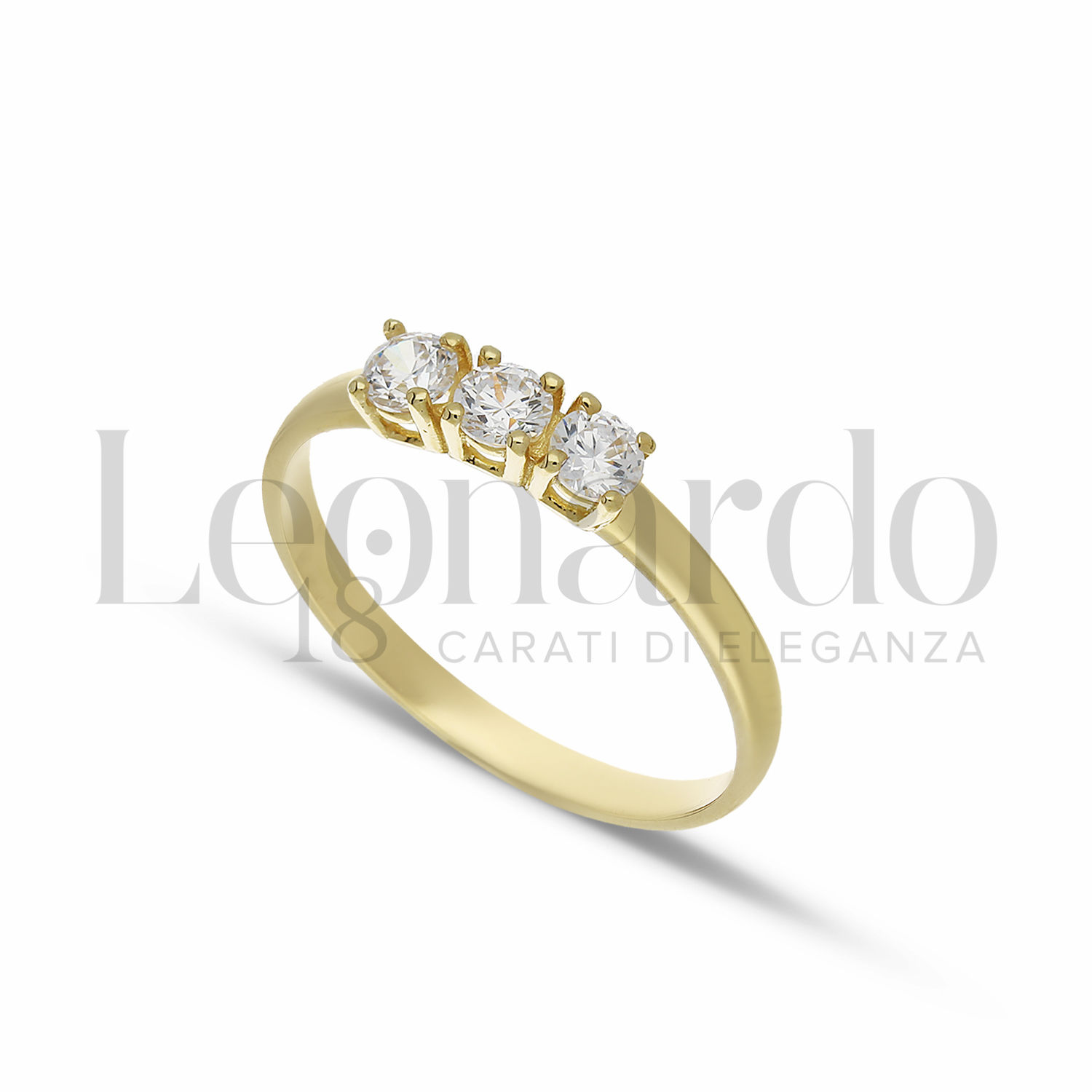 Anello Trilogy da Donna, modello lineare, con Zirconi da 5,50 mm, in Oro Giallo