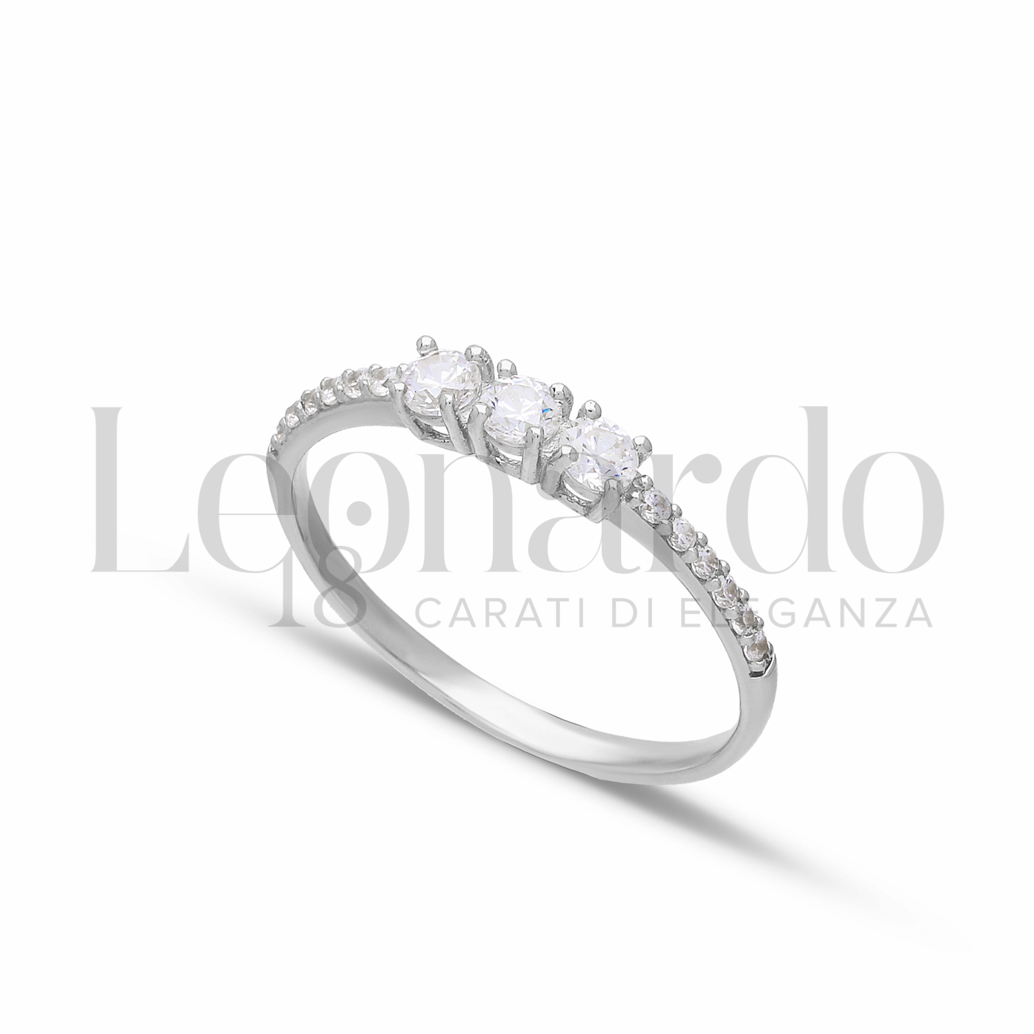 Anello Trilogy da Donna, con Pietre Bianche sul gambo in Oro Bianco