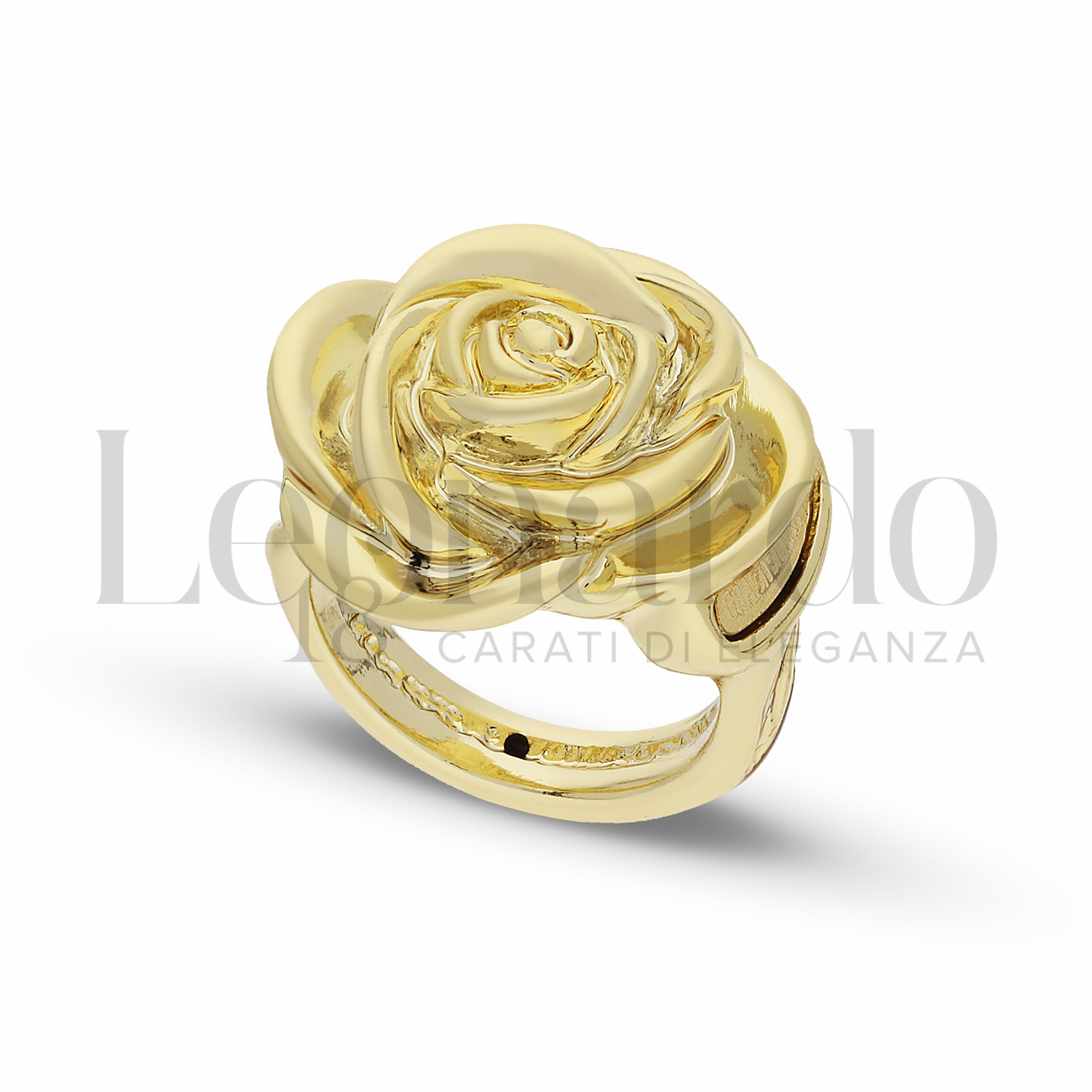 Anello da Donna, Air Collection, a forma di Rosa,realizzato in elettroformatura, finitura lucida in Oro Giallo.