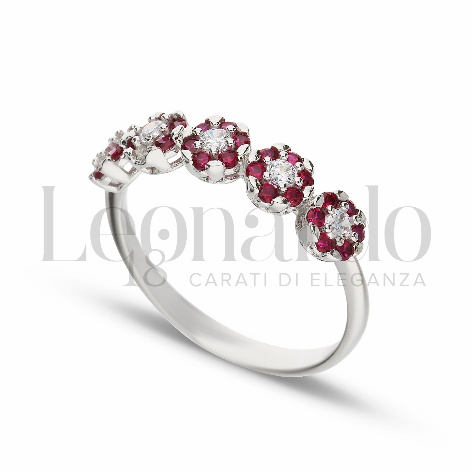5 Fiori Modello con Zirconi rossi e zirconi bianchi in Oro Bianco da 2,4gr.