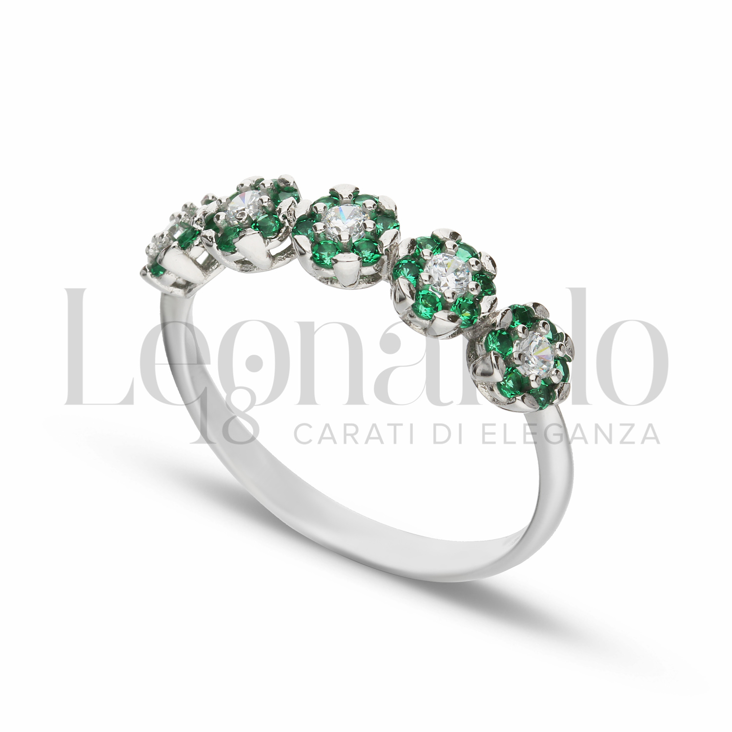 5 Fiori Modello con Zirconi verdi e zirconi bianchi in Oro Bianco da 2,4gr.
