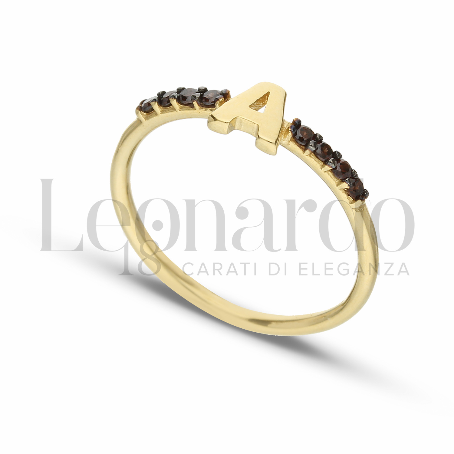 Anello con iniziale microfusa in Oro Giallo e Zirconi Brown. Ordinabile in qualsiasi misura e in differenti combinazioni di colore e lettere.