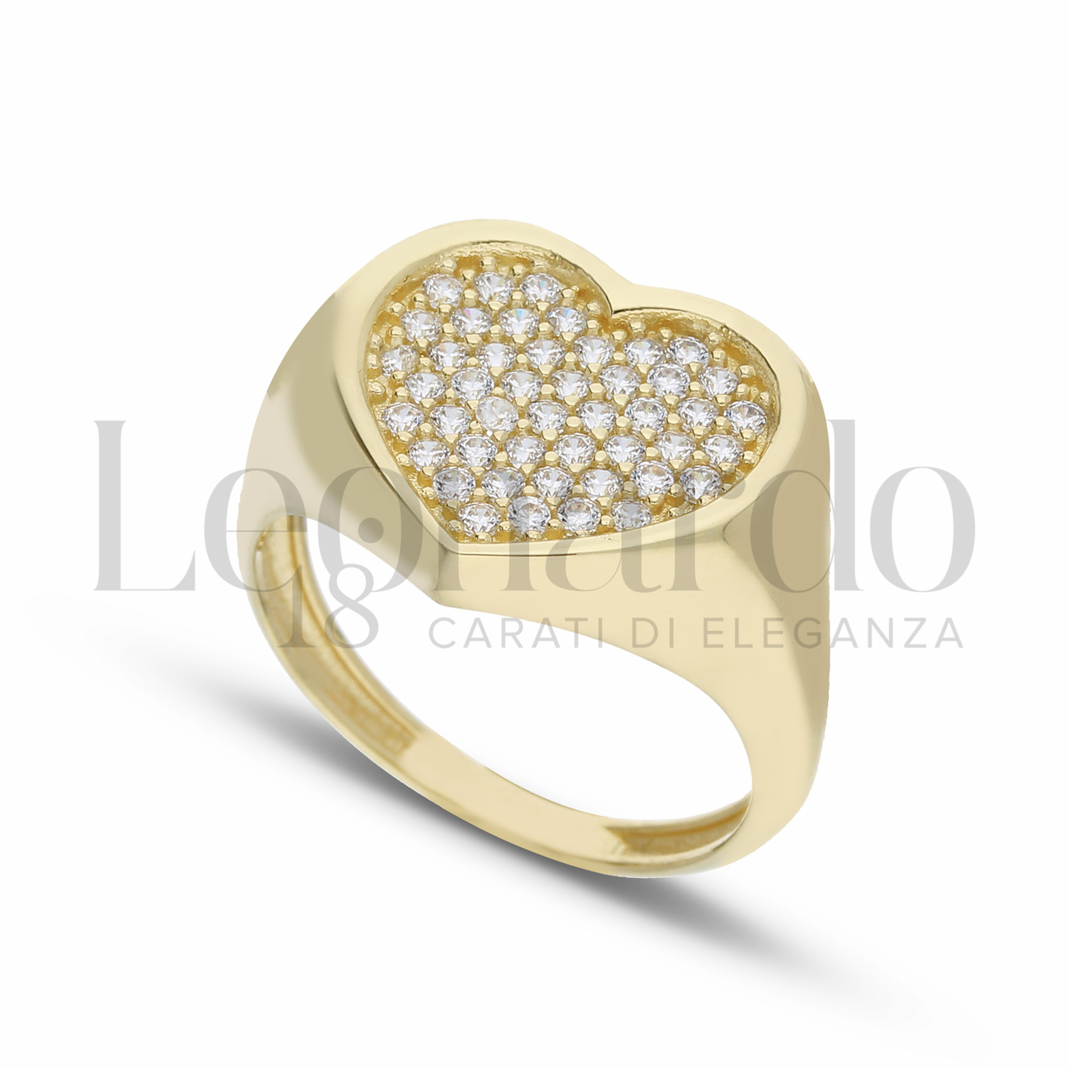 Anello da Mignolo, forma a cuore, 1° misura, con zirconi bianchi, in Oro Giallo.