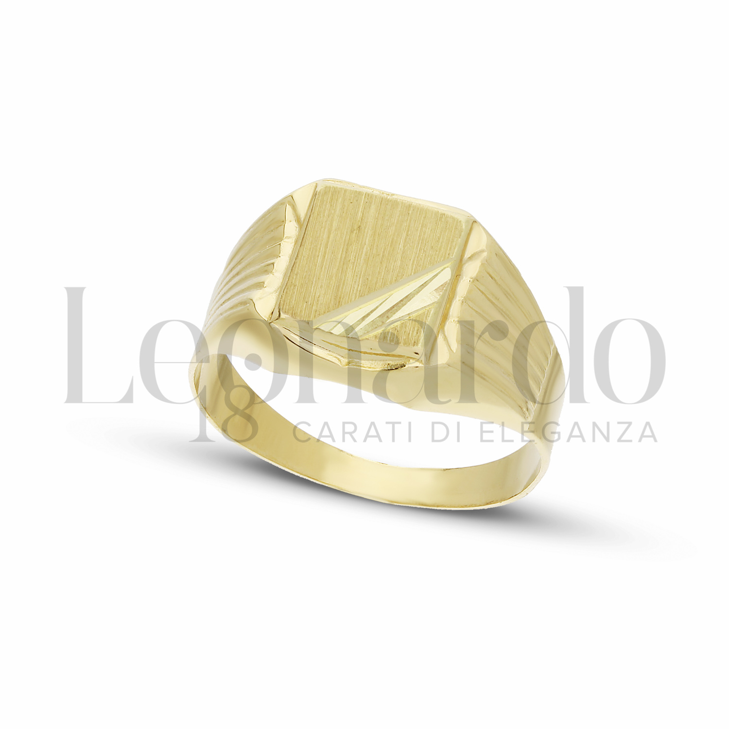 Anello da mignolo, forma quadrata, con angoli diamantati, finitura lucida e satinata, in Oro Giallo