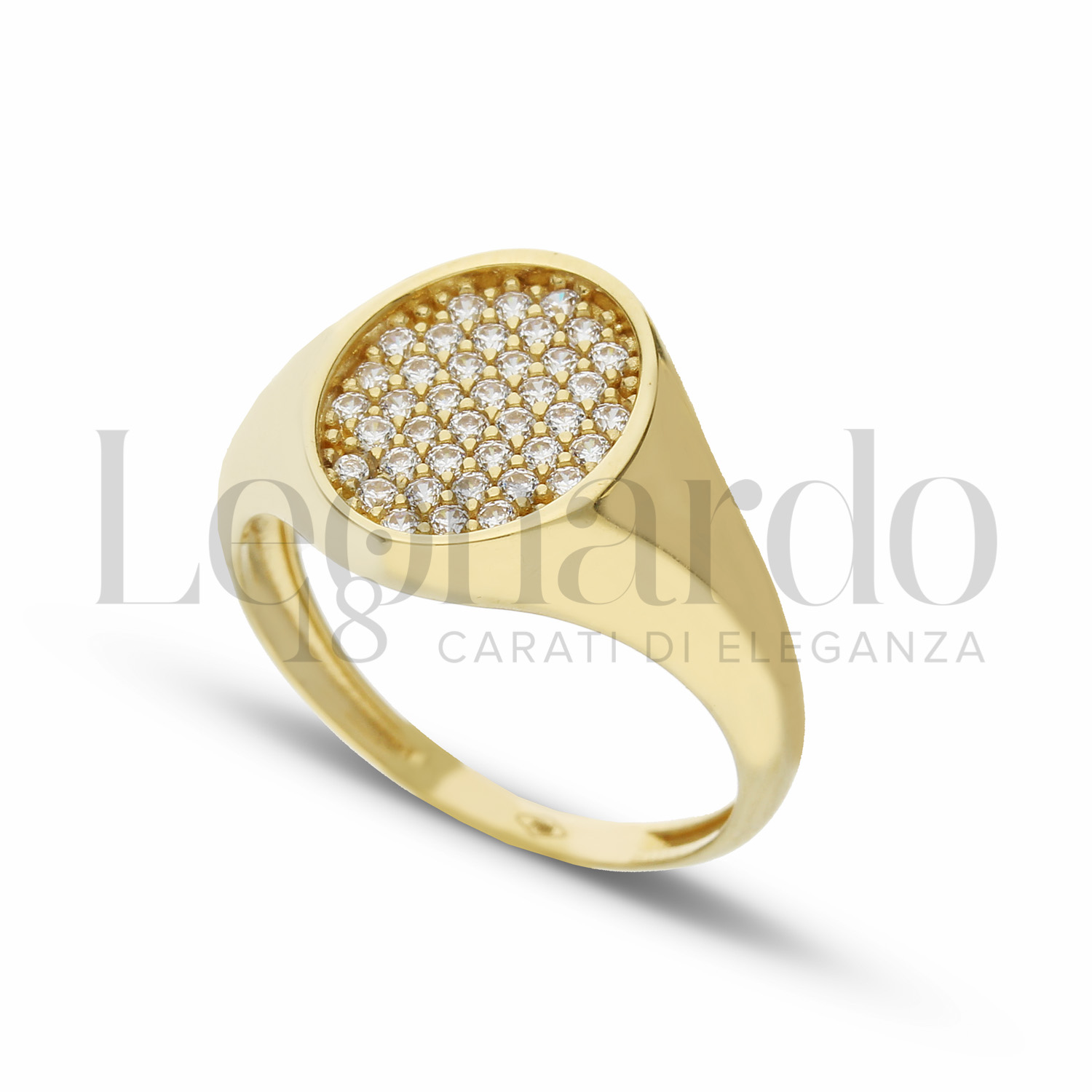Anello da Mignolo, forma ovale, 1° misura, con zirconi bianchi, in Oro Giallo.