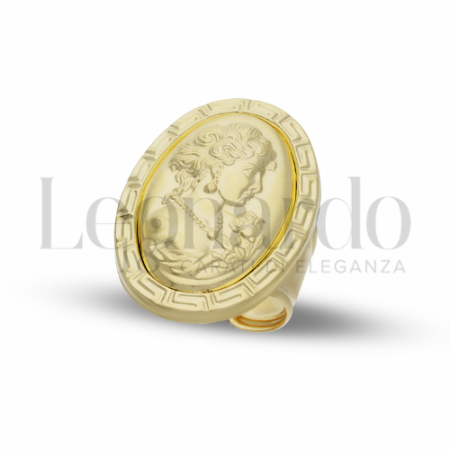 Anello Cammeo da Donna, Regolabile, finitura Lucida e Satinata, in Oro Giallo