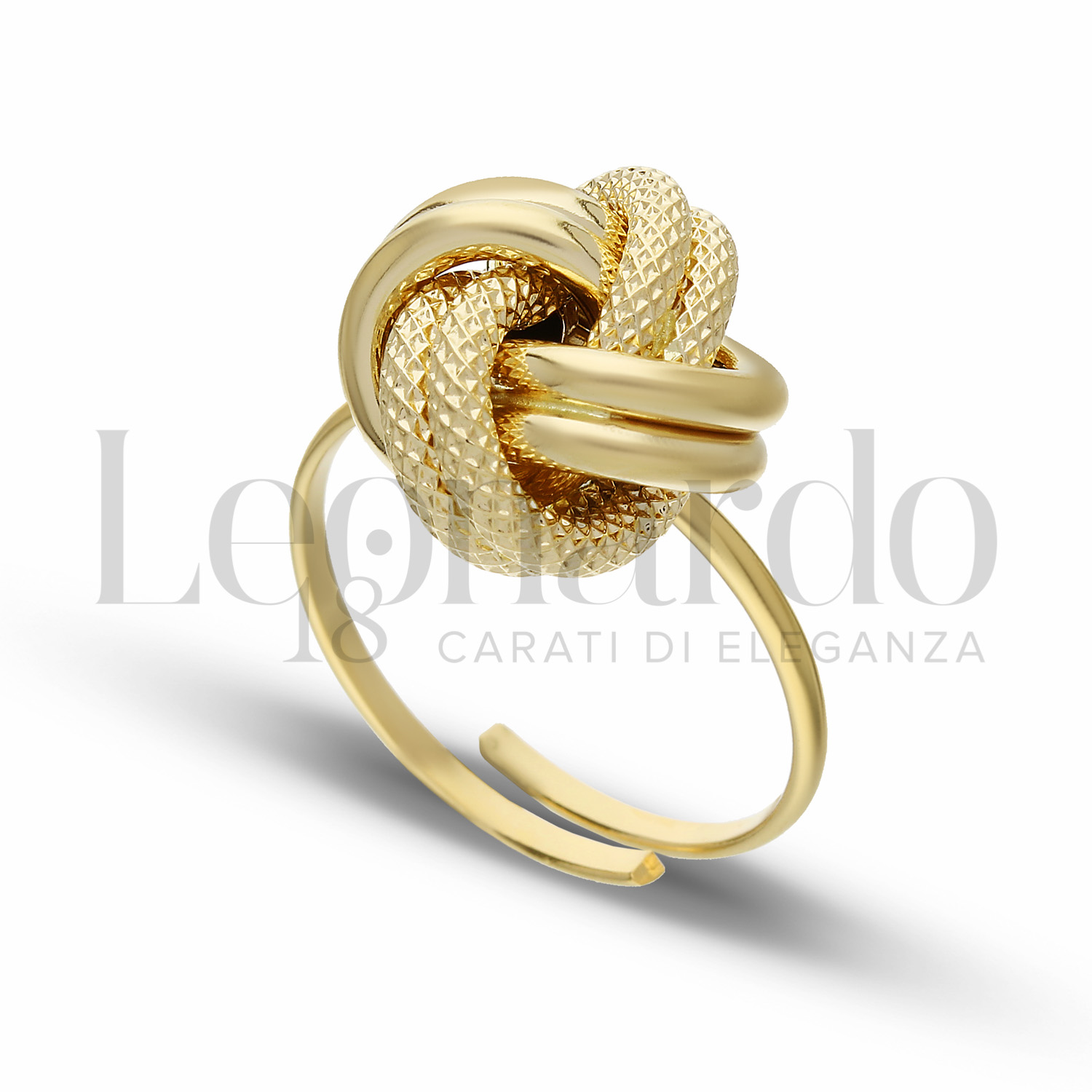 Anello da Donna, Nodo, 2° misura, regolabile, finitura lucida e godronata in Oro Giallo.