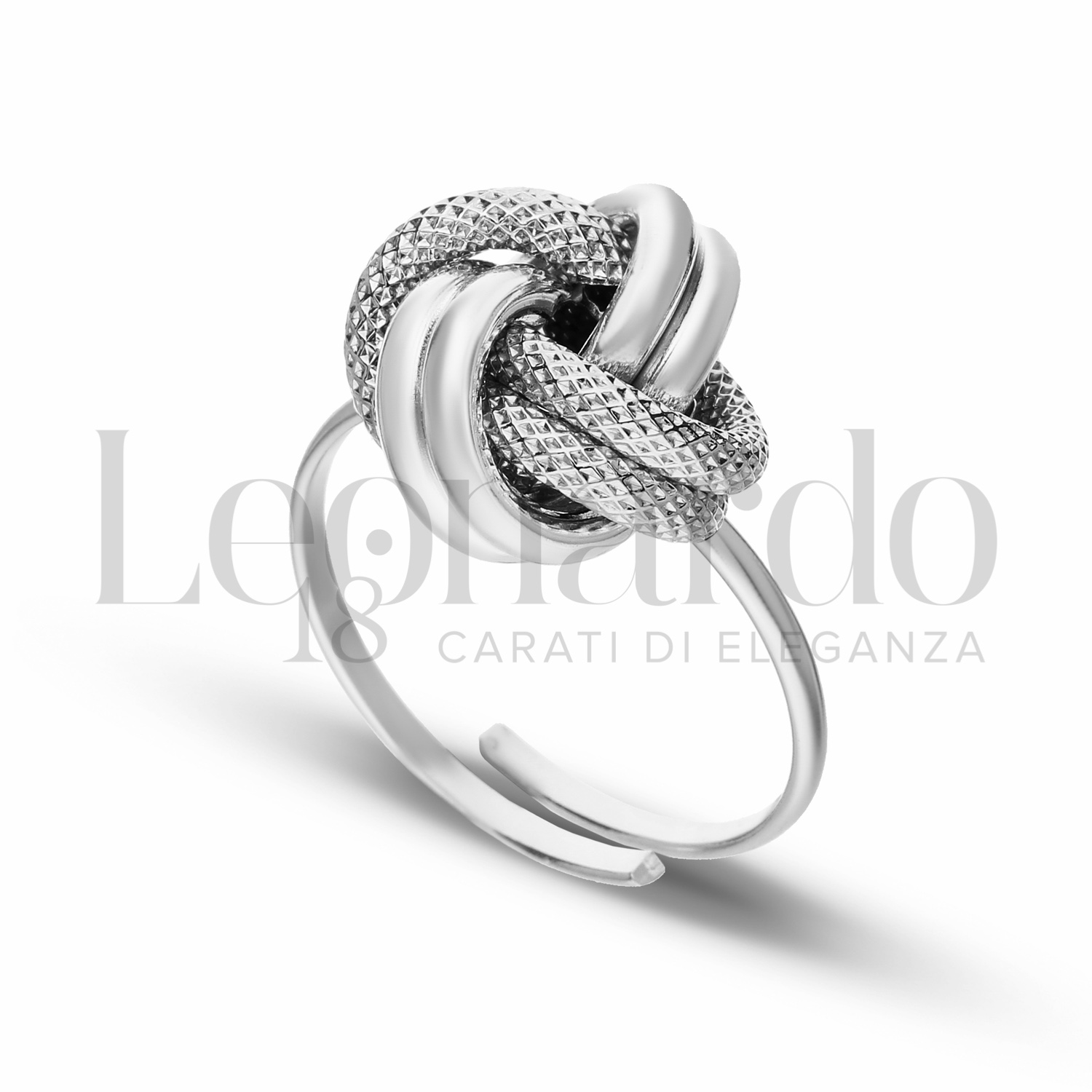 Anello da Donna, Nodo, 2° misura, regolabile, finitura lucida e godronata in Oro Bianco.