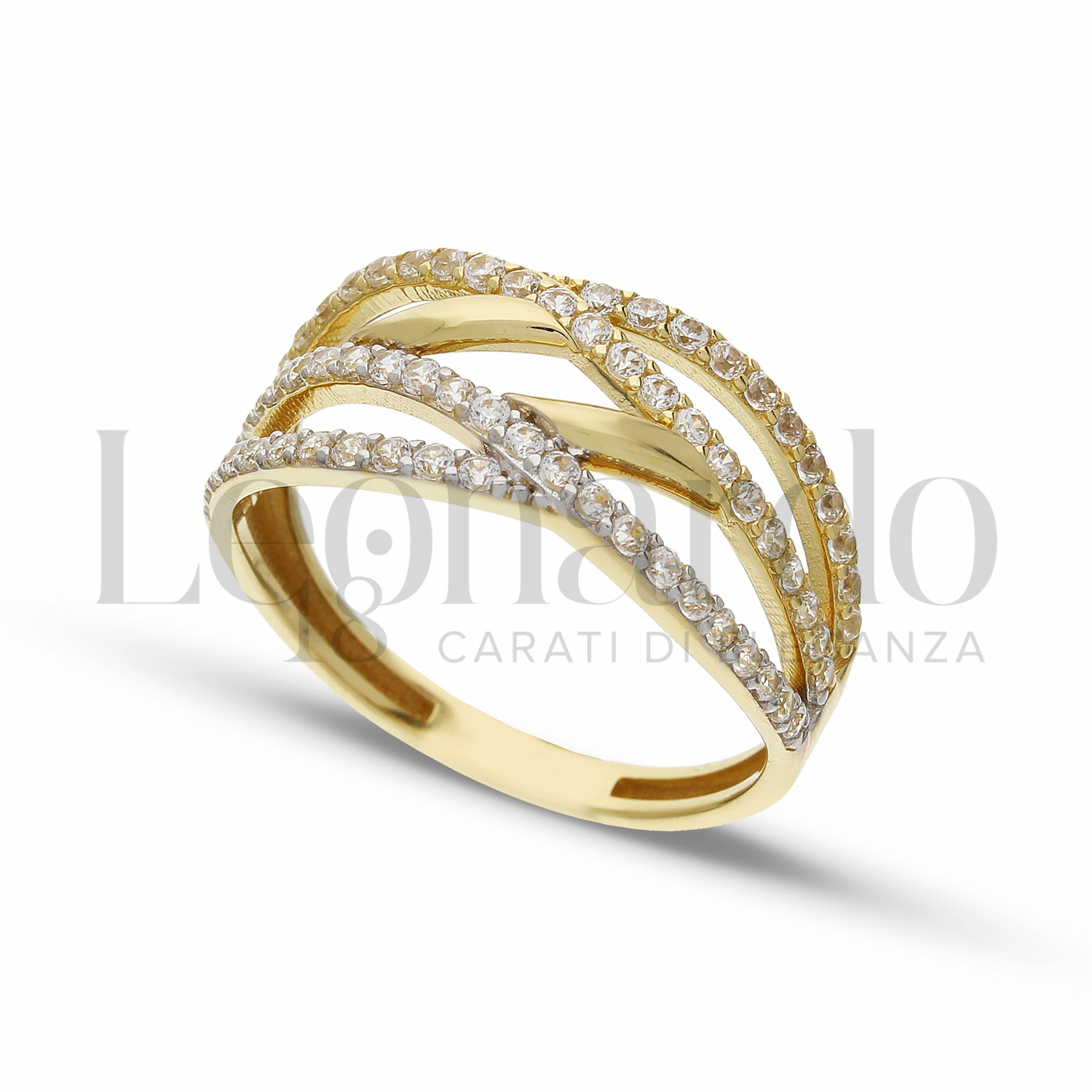 Anello da Donna, realizzato con lavorazione 3D, con zirconi bianchi in Oro Giallo e Oro Biano