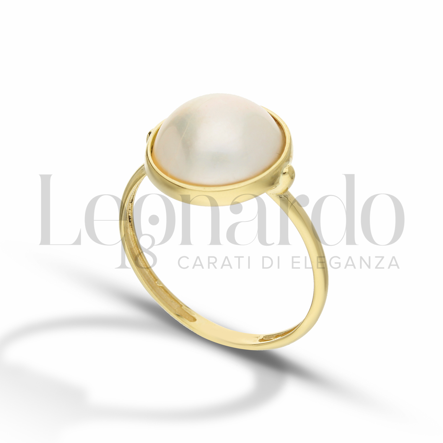 Anello da Donna, con Perla Mabè da 10 mm, finitura lucida in Oro Giallo.