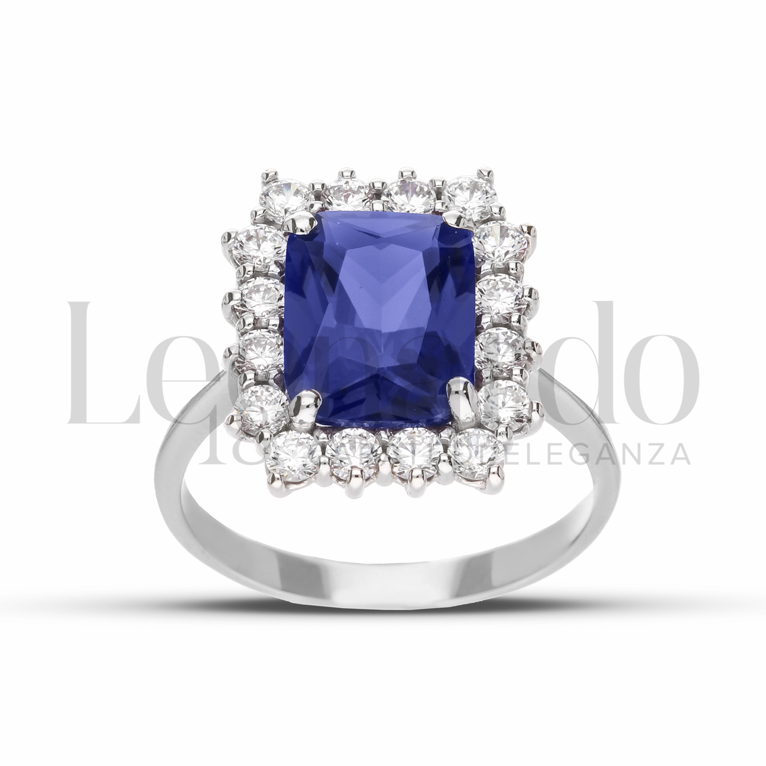 Kate 3° Misura Modello con Pietra di Colore Blu e zirconi bianchi in Oro Bianco da 4,4gr.
