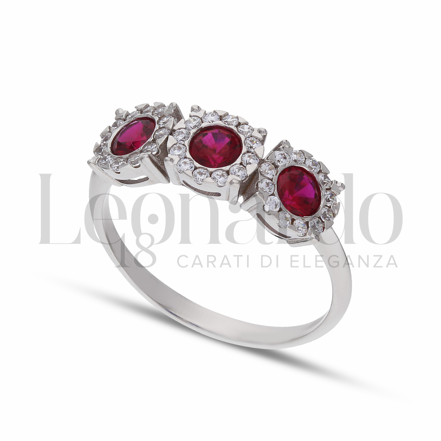 Trilogy Modello con Pietra di Colore Rosso e zirconi bianchi in Oro Bianco da 2,7gr.