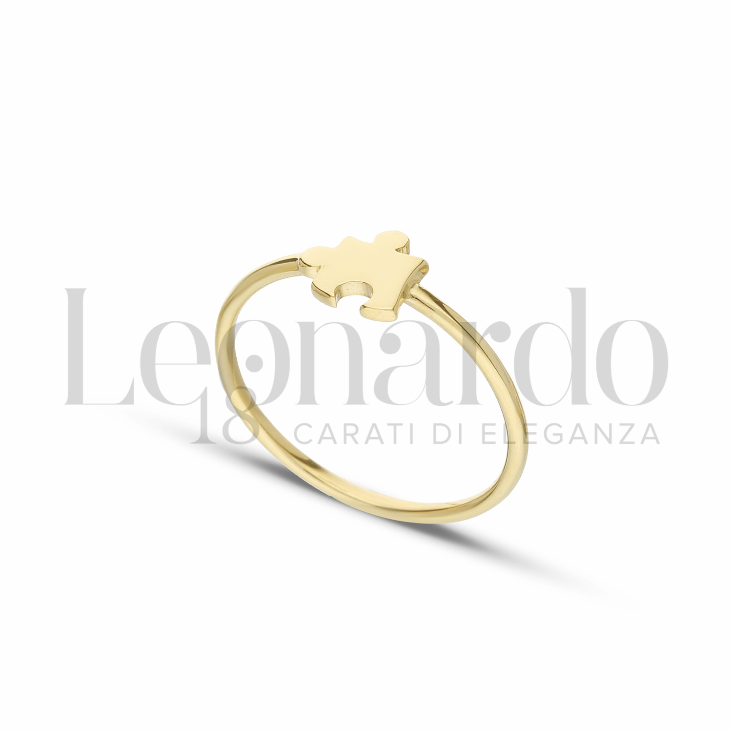 Anello da Donna a filo, con elemento piatto a forma di puzzle, 1° misura, finitura lucida, in Oro Giallo.