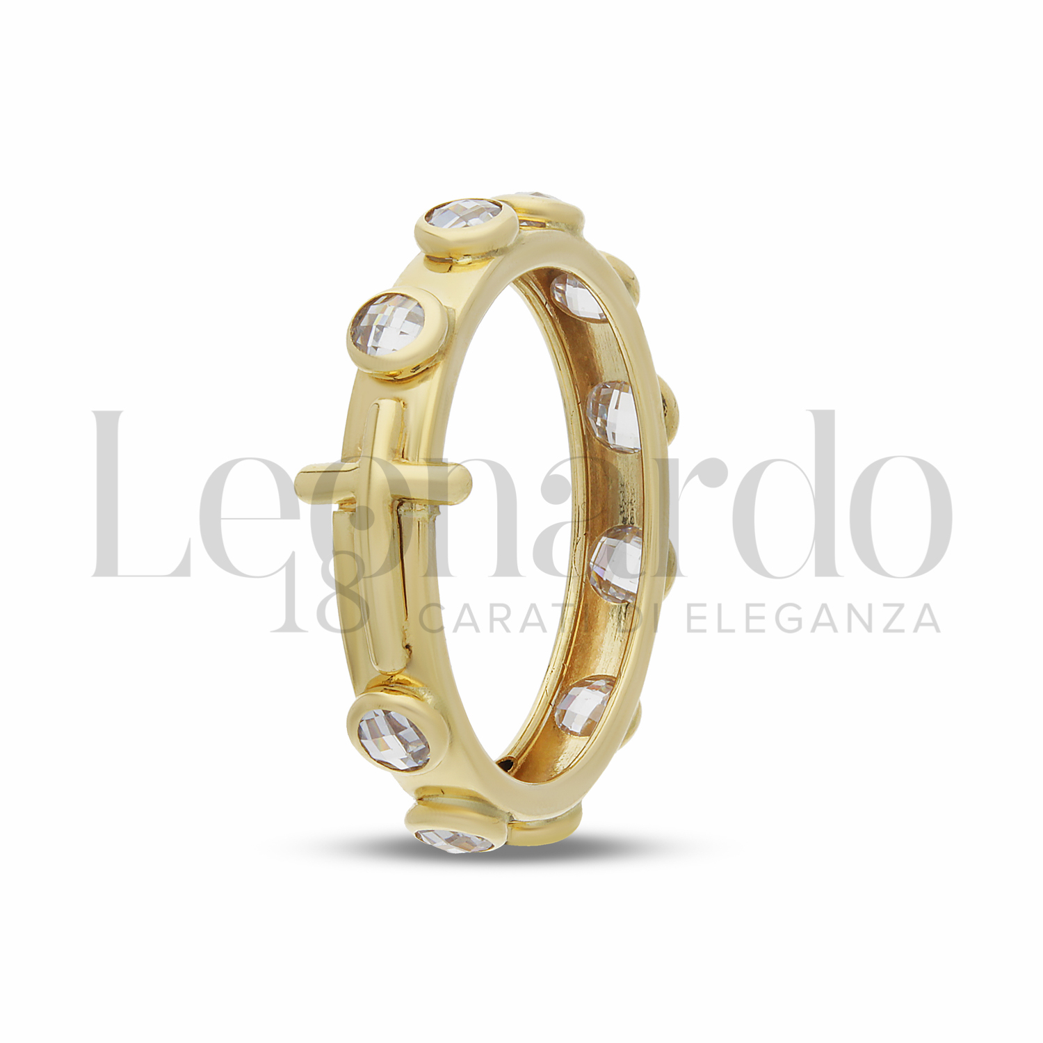 Anello modello Rosario, con Croce, zirconi Bianchi in Oro Giallo