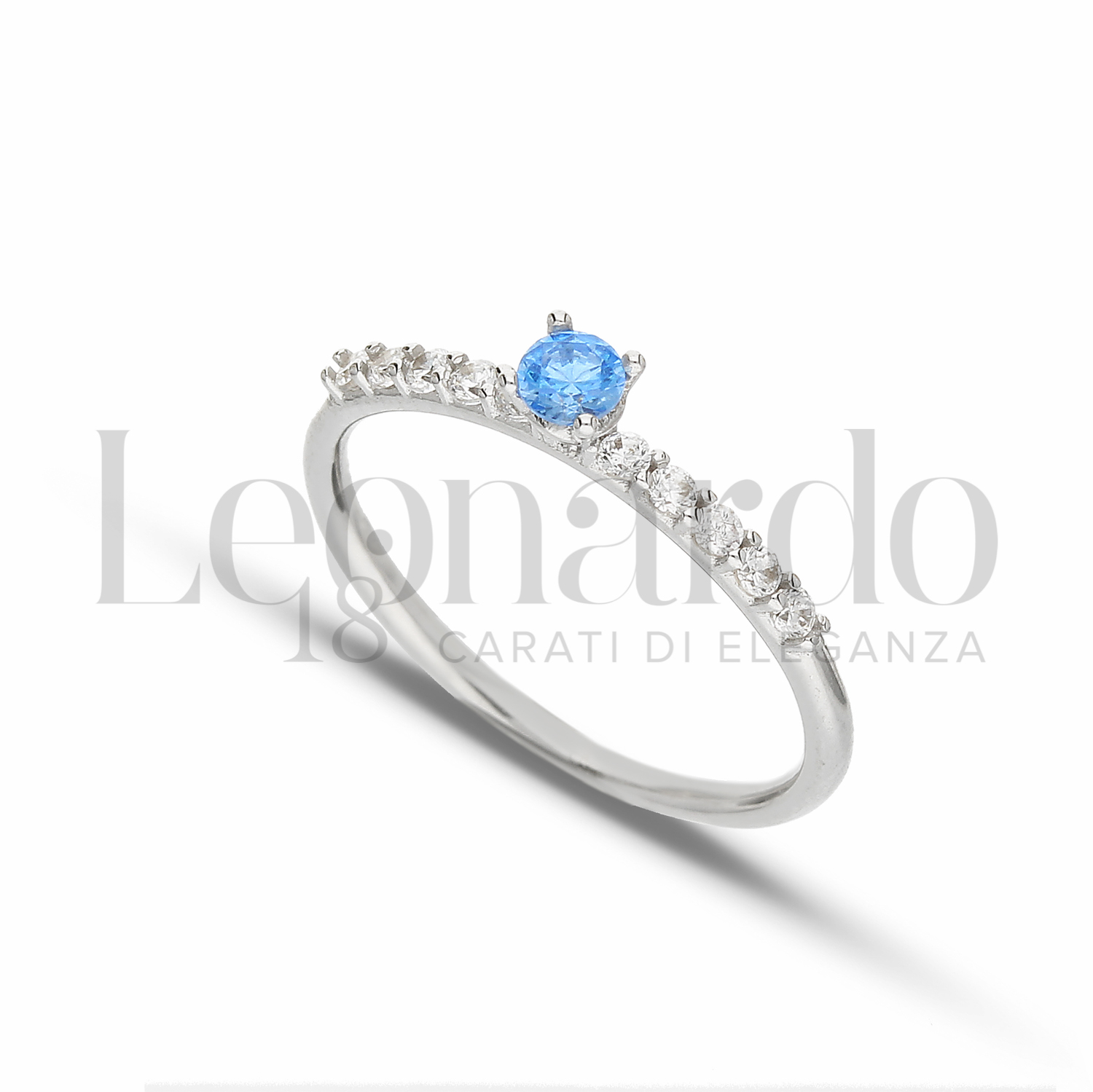 Anello Colorful Collection, con zirconi bianchi e pietra azzurra, in Oro Bianco.