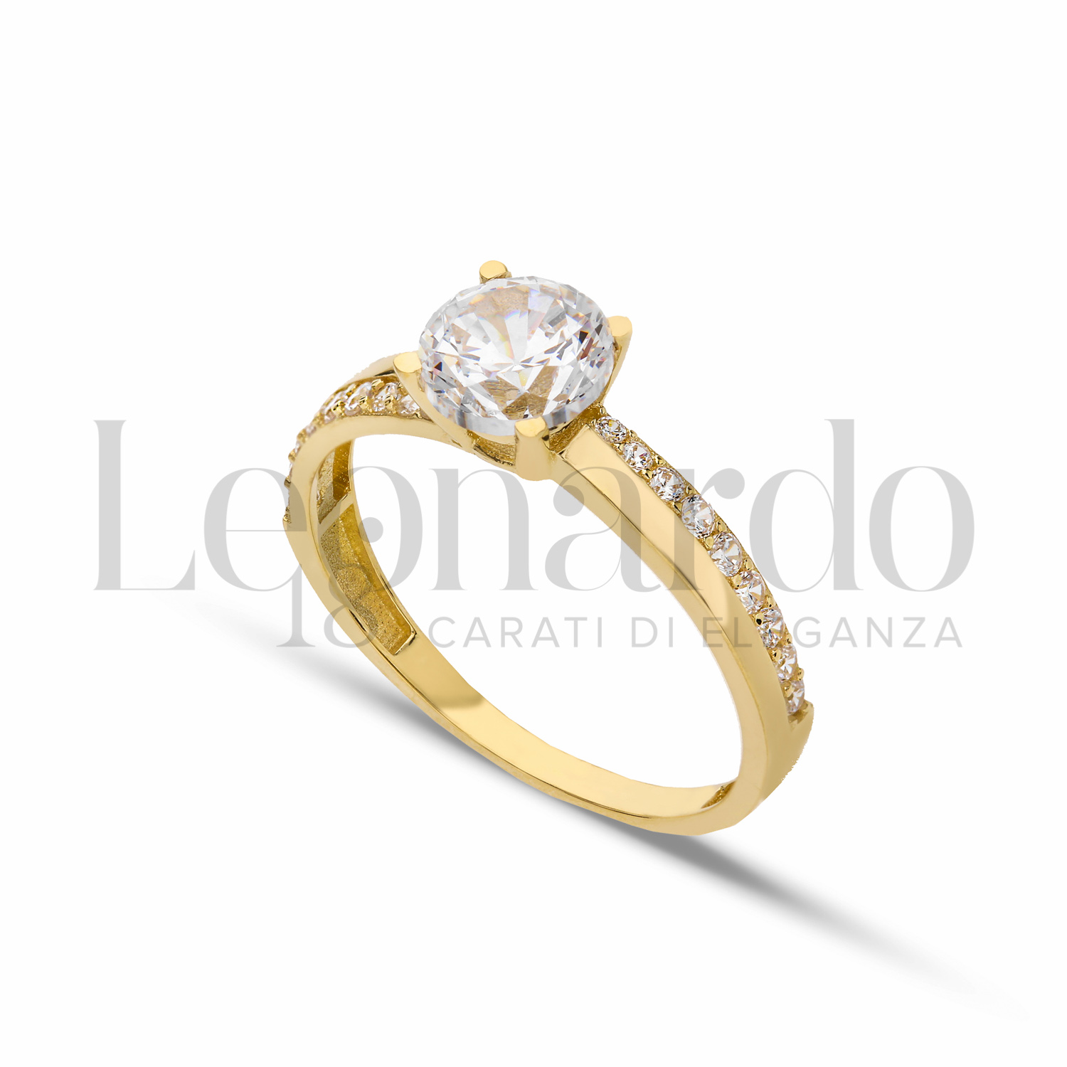 Anello Solitario da Donna con pietre sul gambo in oro giallo da 2,40 Grammi.