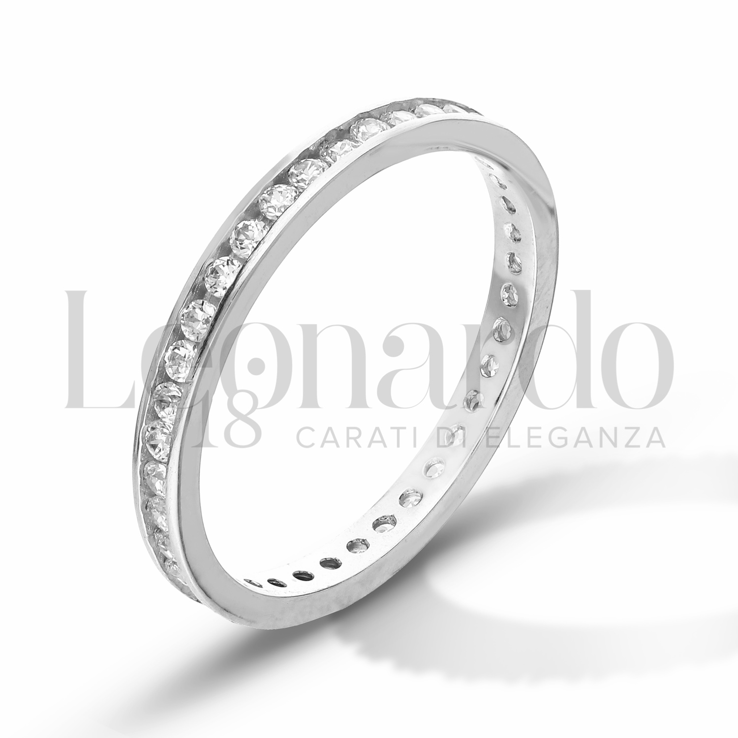 Veretta battuta a tutto giro in Oro Bianco, pietra 1,5 mm, da 1,50 Grammi. Il peso varia a seconda della misura
