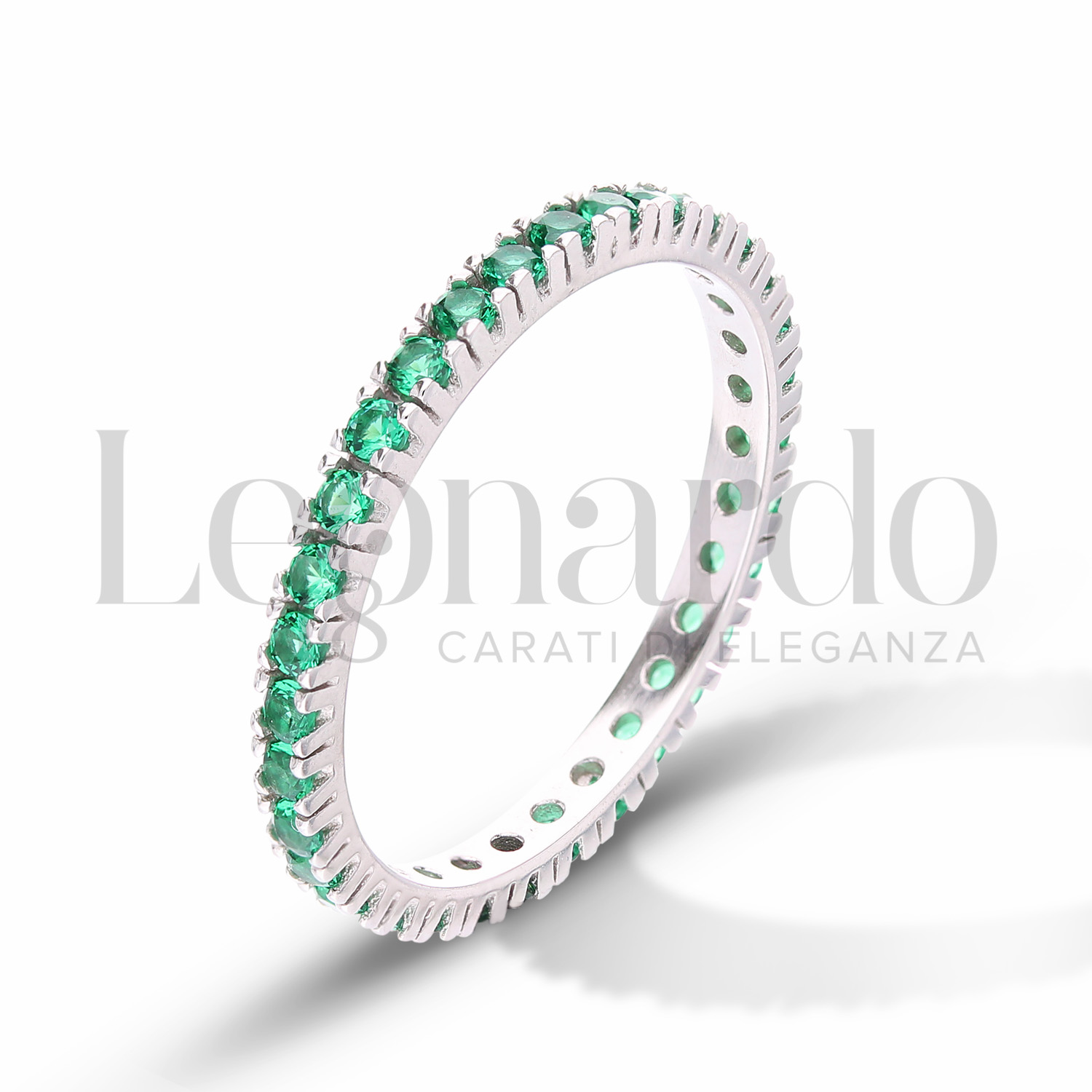 Modello o finitura Veretta a Tutto Giro - A Griffe con Zircone verde in Oro Bianco da 2gr.