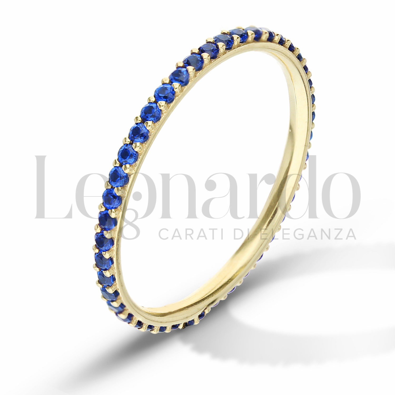 Modello o finitura Veretta a Tutto Giro - A Griffe con Zircone Blu in Oro Giallo da 1,6gr.
