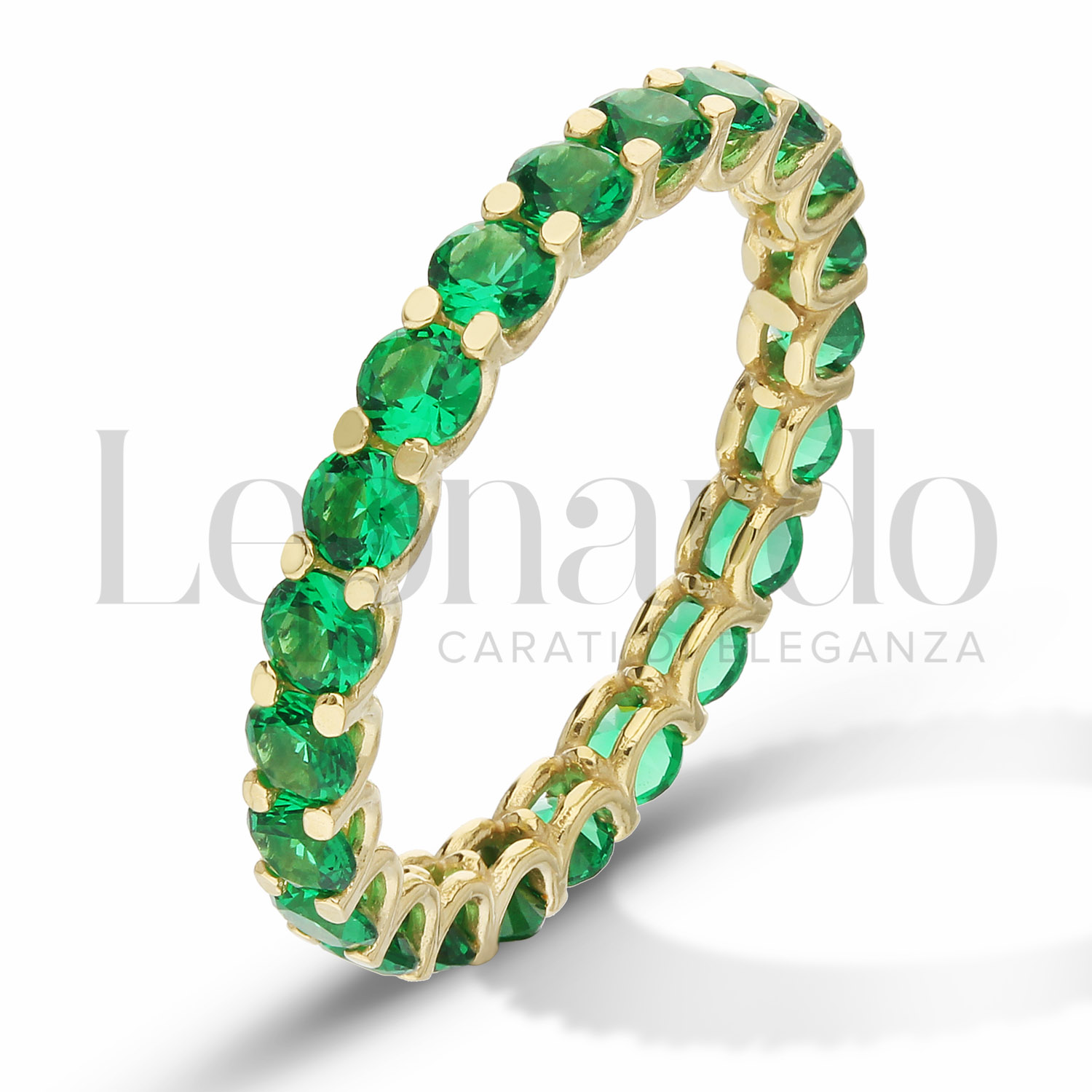 Veretta a griffe a tutto giro con zirconi verdi in Oro Giallo, pietra 3 mm. Il peso varia a seconda della misura