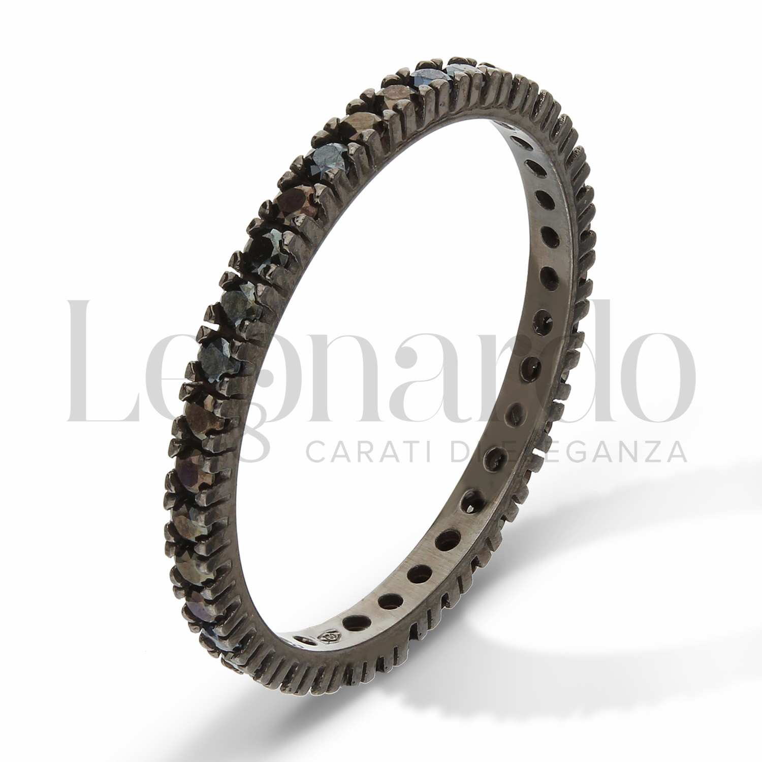 Veretta a griffe a tutto giro, con zirconi neri da 1,70 mm, in Oro Brunito. Il peso varia a seconda della misura