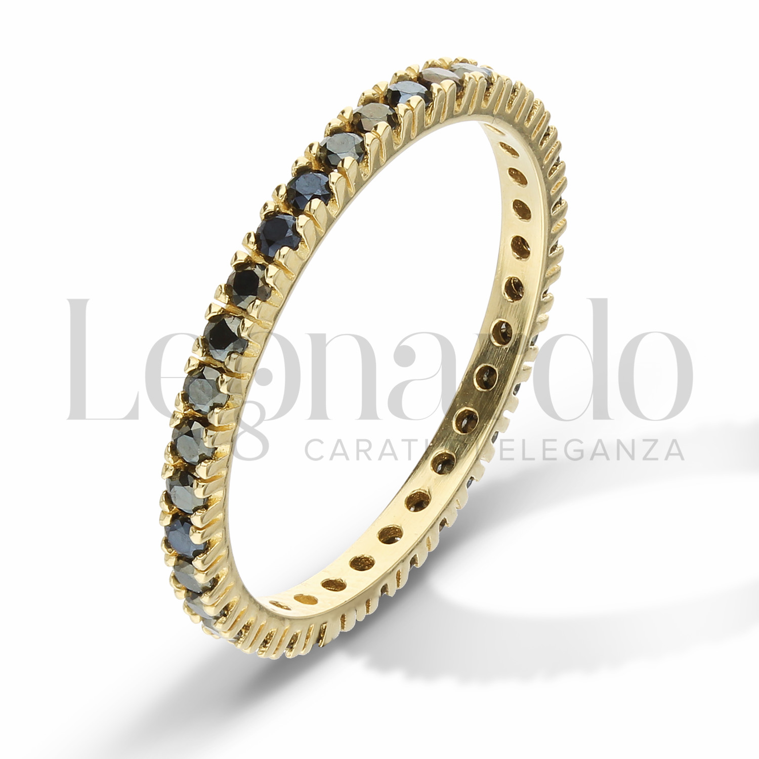 Veretta a griffe a tutto giro, con zirconi neri da 1,70 mm, in Oro Giallo. Il peso varia a seconda della misura