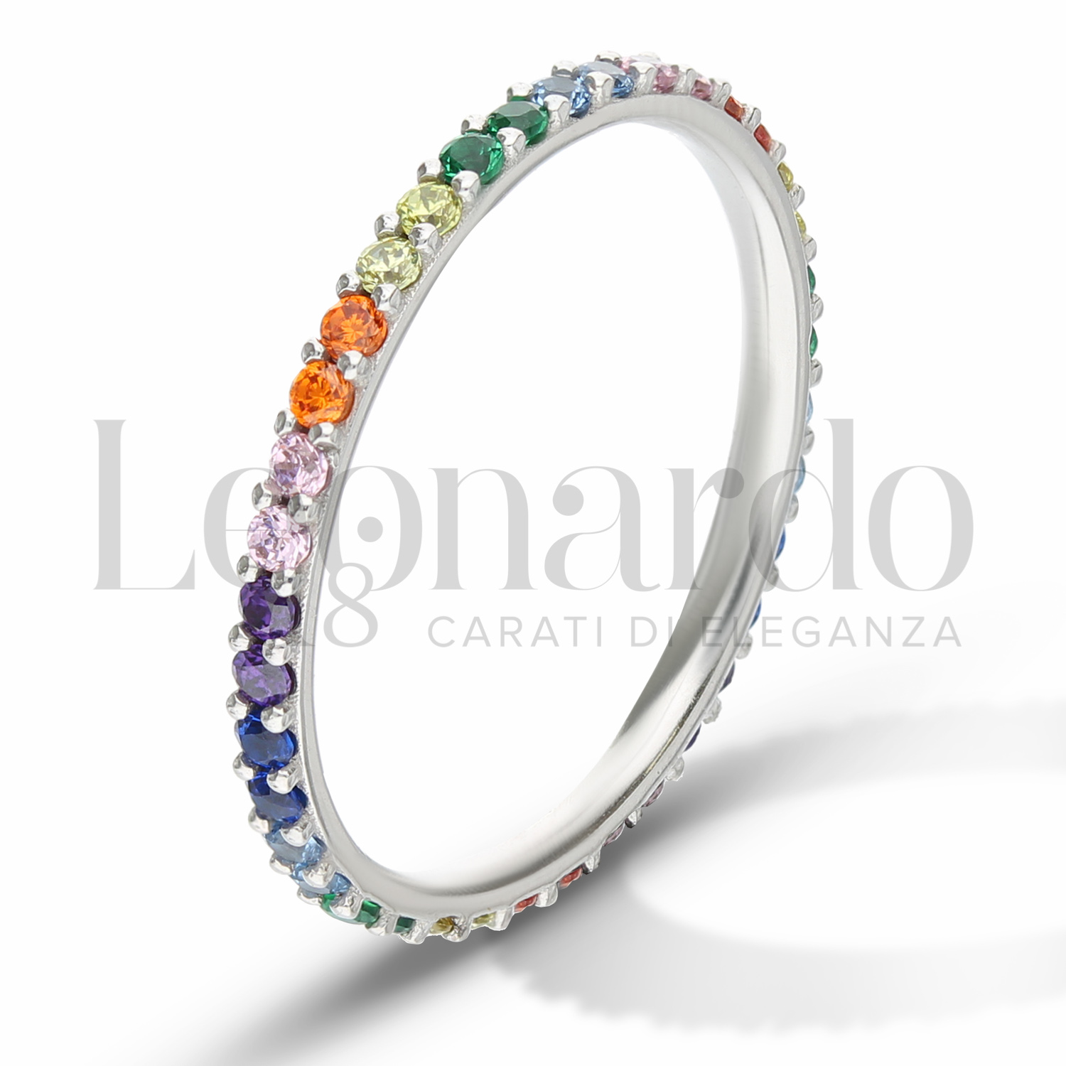 Modello o finitura Veretta a Tutto Giro - A Griffe con Pietre Rainbow in Oro Bianco da 1,8gr.