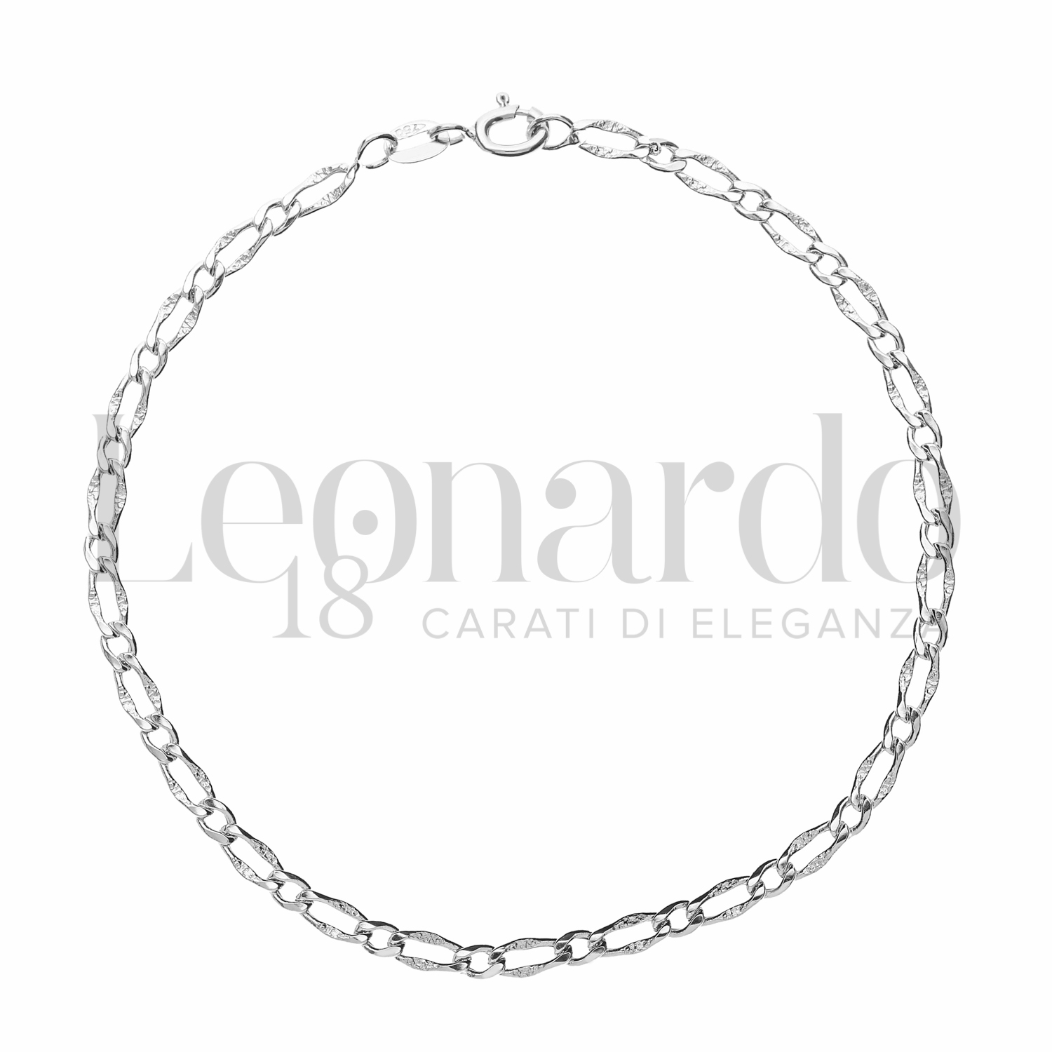 Bracciale da Uomo a catena piatta, filo 80, maglia 1+1 senza traversino satinata, in Oro Bianco.