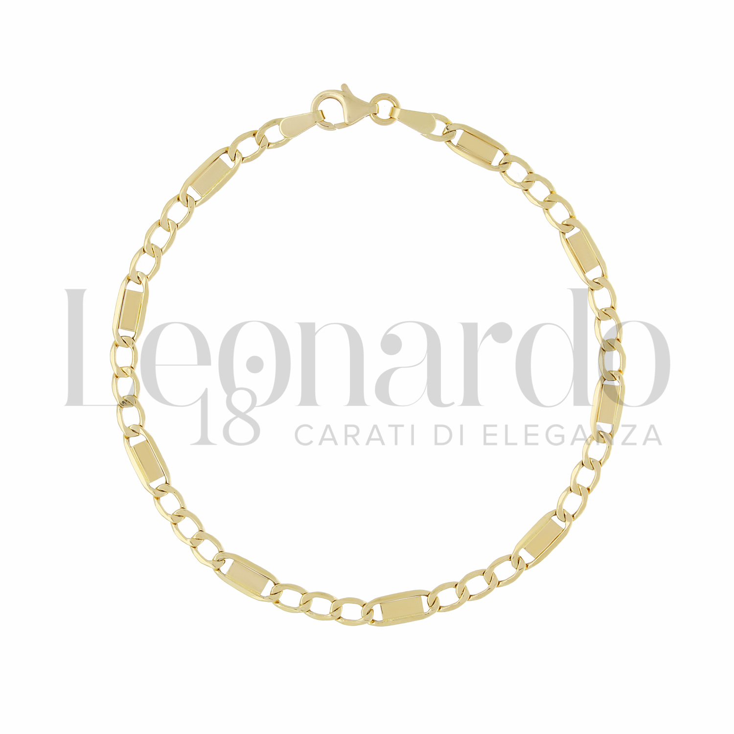 Bracciale da Uomo maglia Figaro con greca, Filo 60, in Oro Giallo