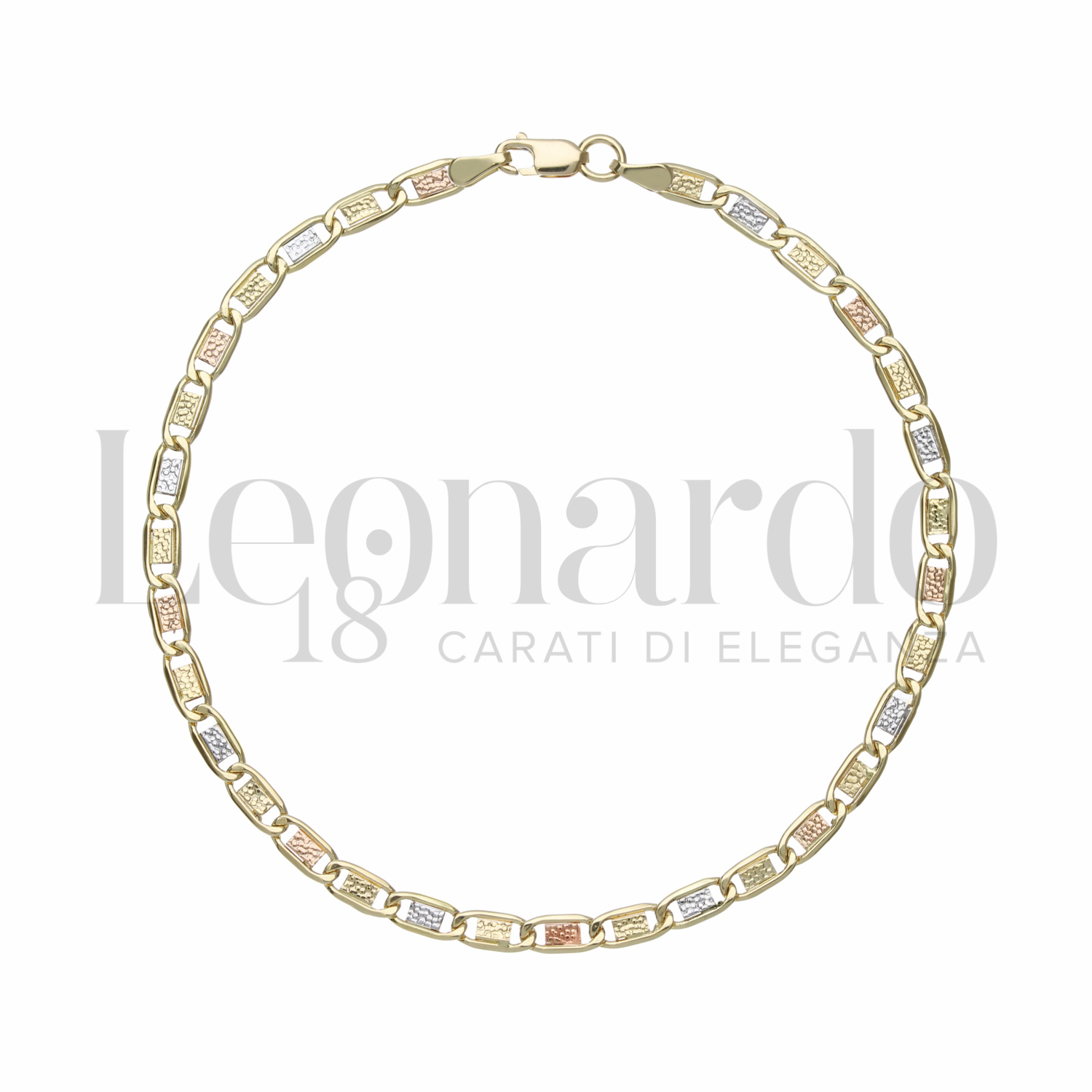 Bracciale a catena piatta da Uomo, maglia Valentino puntinata, filo 60, in Oro Giallo, Oro Bianco e Oro Rosa.