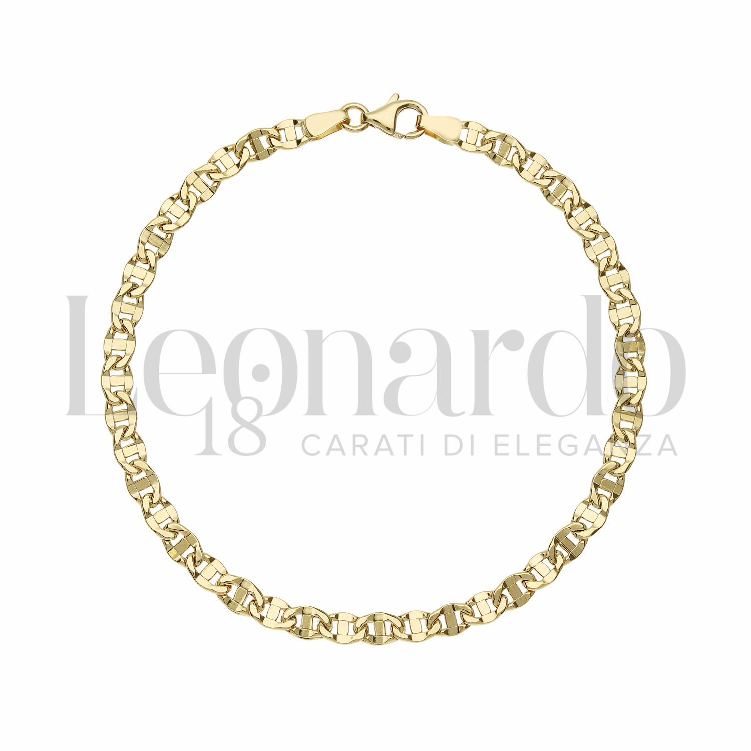 Bracciale da Uomo a catena piatta, Filo 180, maglia grumetta, in Oro Giallo