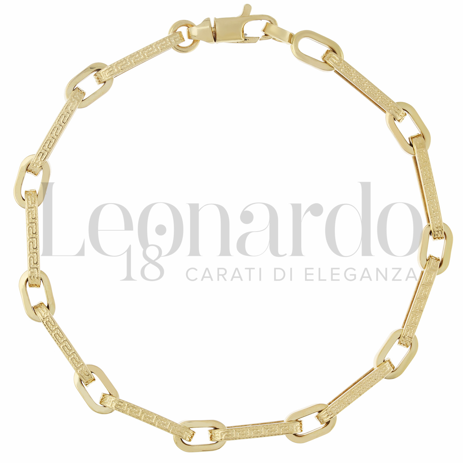 Bracciale a Catena Tubolare con Greca, da Uomo, 1° misura, a 21 cm in Oro Giallo.
