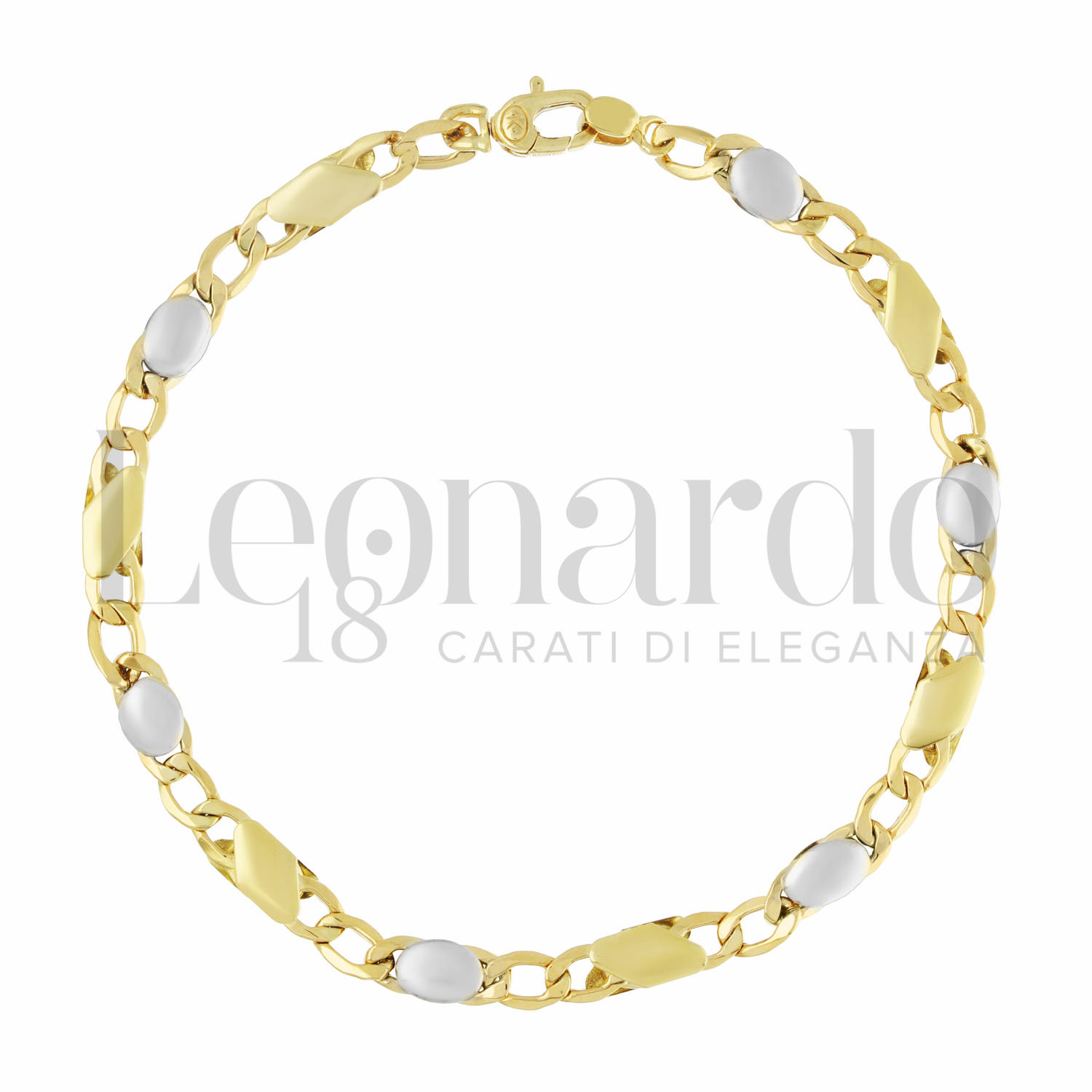 Bracciale da Uomo a Catena Piatta a 20 cm in Oro Giallo e Oro Bianco.