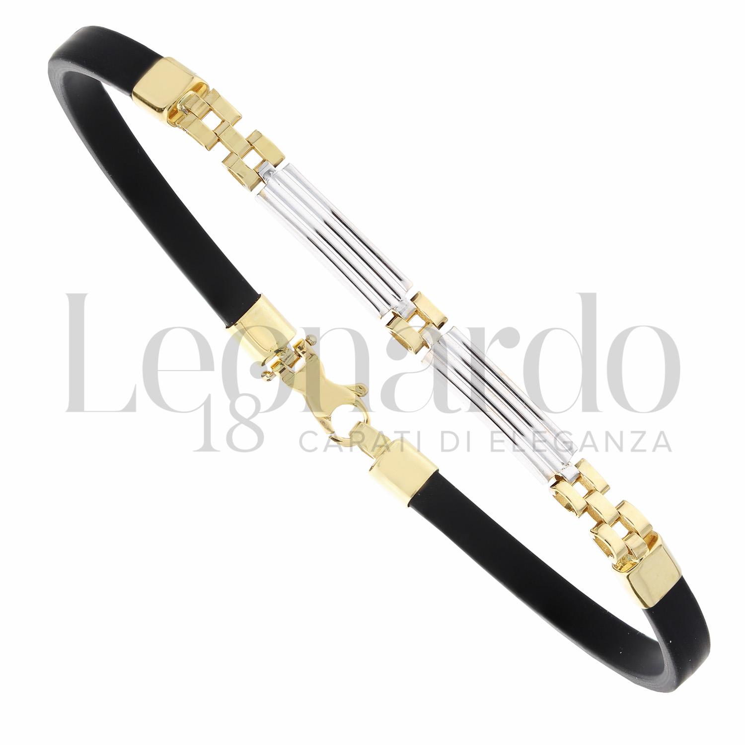 Bracciale in Caucciù e centrale a piastre agganciate in Oro Giallo e Oro Bianco.