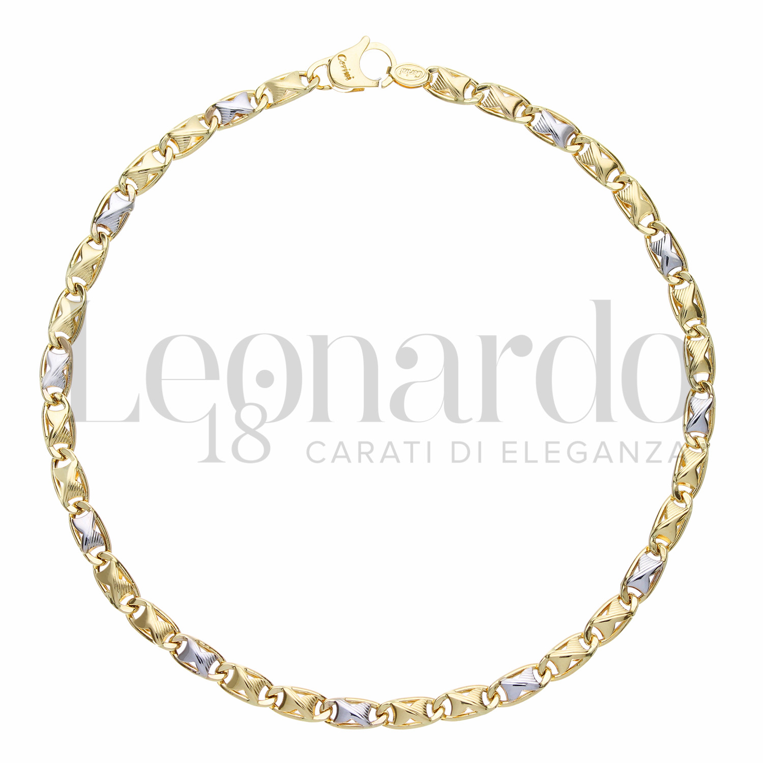 Collana a catena piatta, modello leggera, a 50 cm in Oro Giallo e Oro Bianco