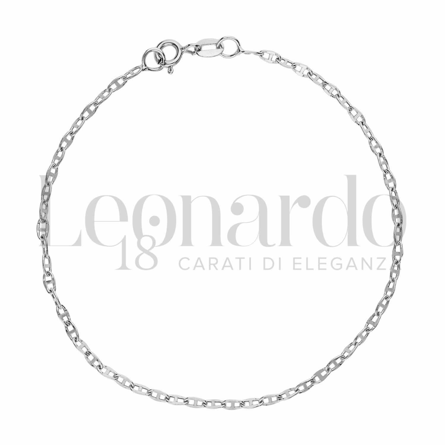 Bracciale da Uomo a catena piatta, filo 50, maglia forzatina con traversino, in Oro Bianco.