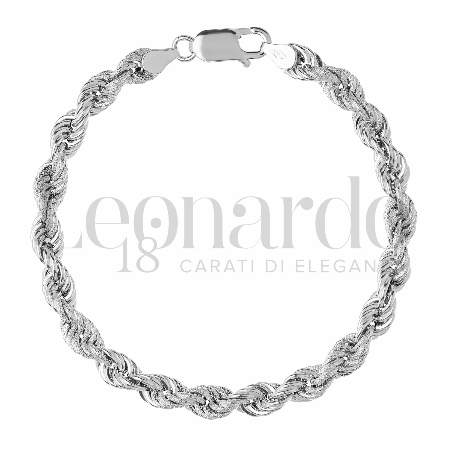 Bracciale Fune Vuota, filo 100, a 17 cm, finitura lucida e satinata in Oro Bianco.