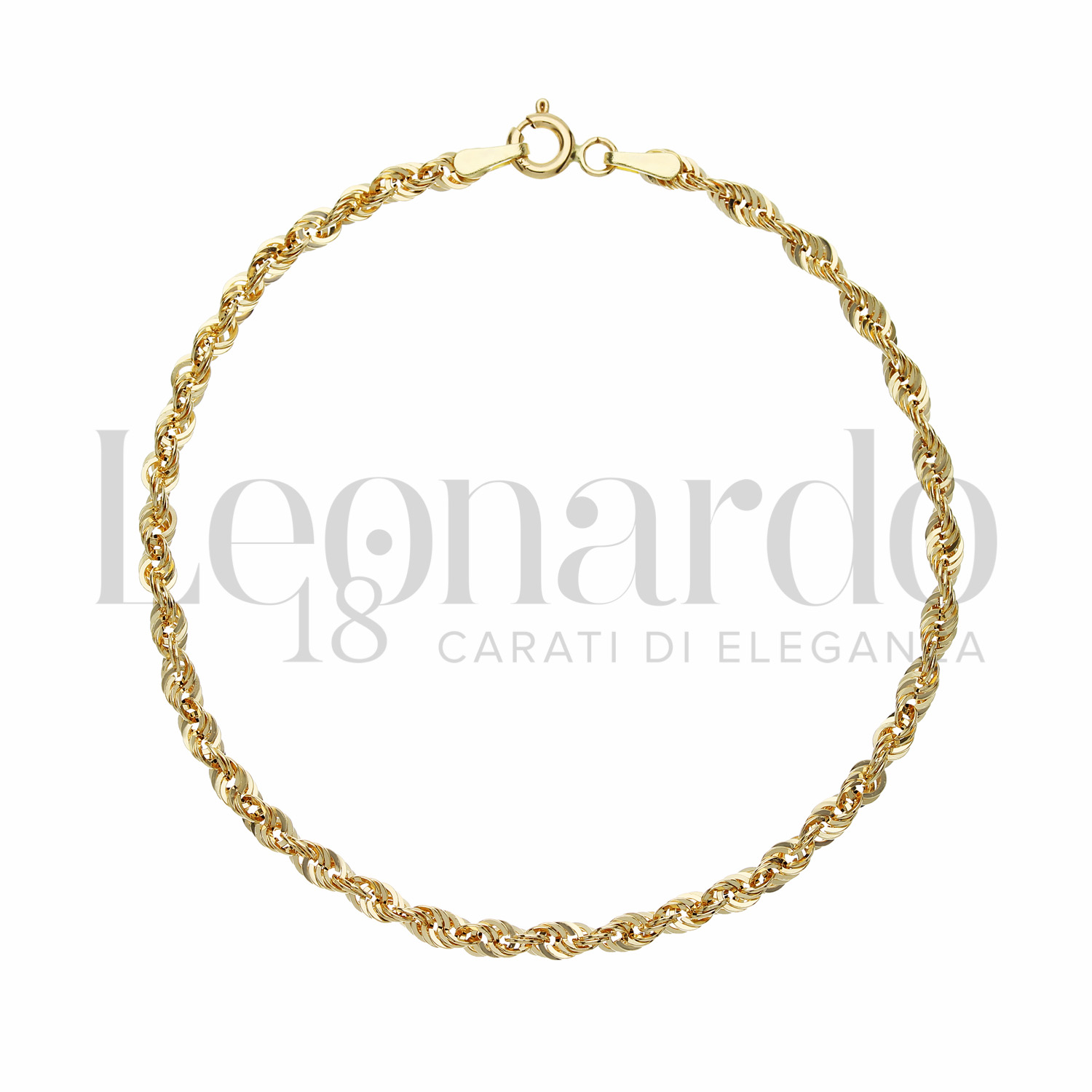 Bracciale Fune Vuota, filo 100, a 17 cm, finitura lucida e satinata in Oro Giallo