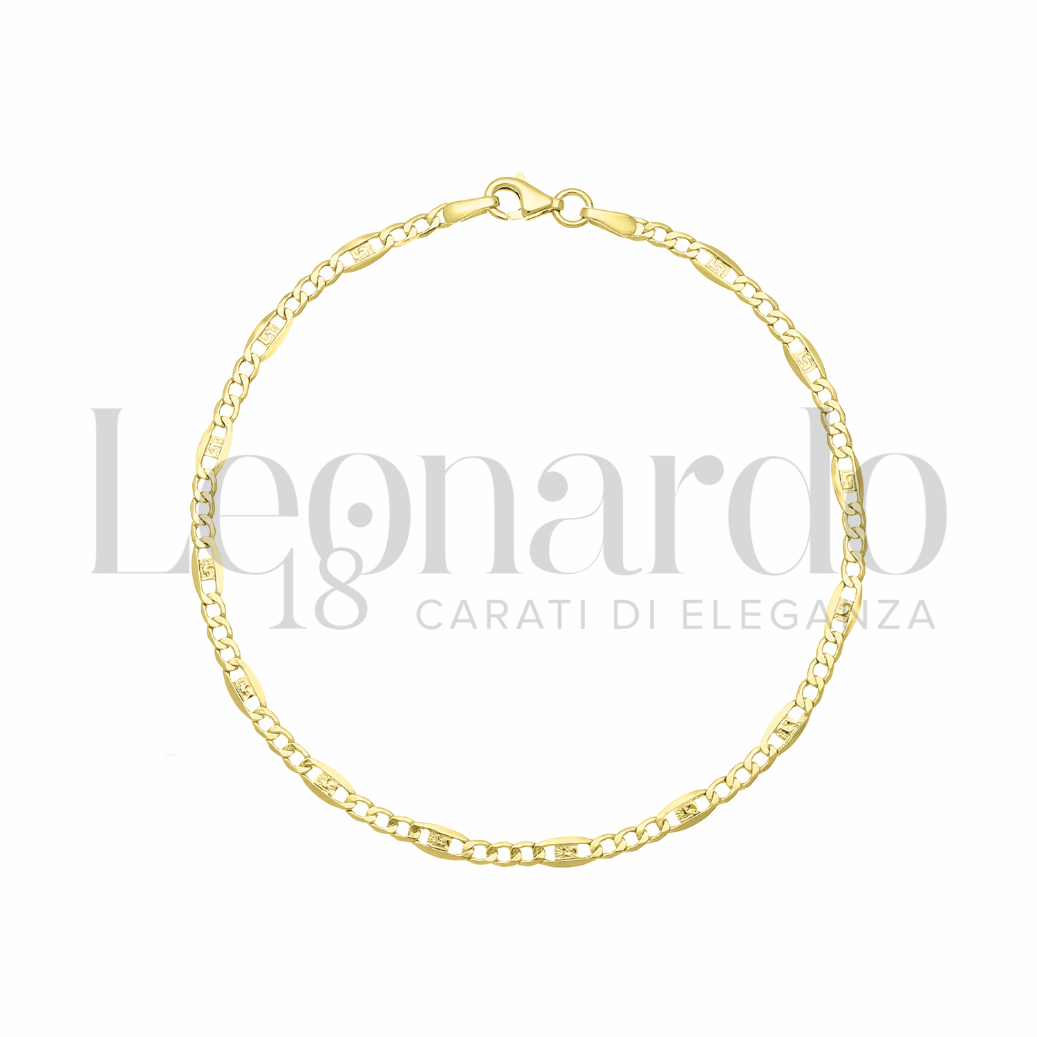 Bracciale da Uomo maglia Figaro con greca, Filo 60, in Oro Giallo.