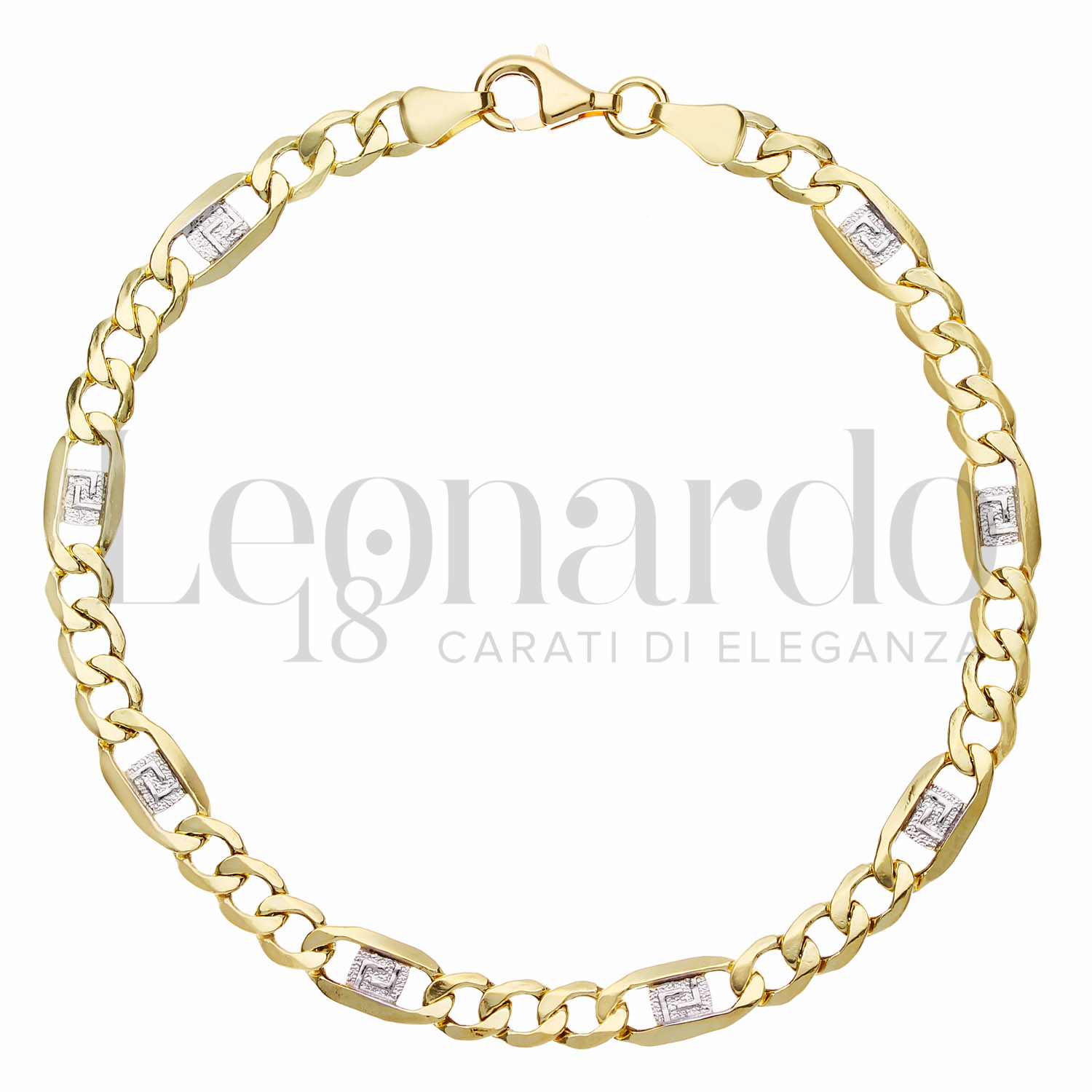 Bracciale maglia figaro con Greca da Uomo in Oro 18 Carati