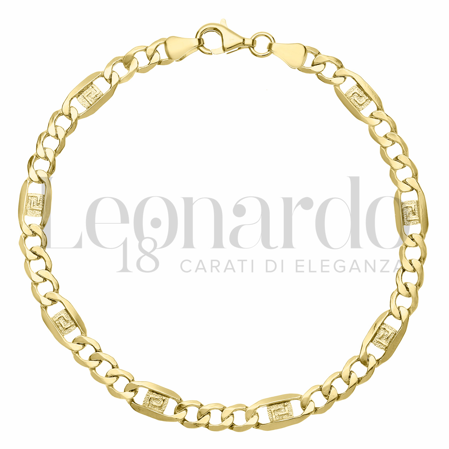 Bracciale maglia figaro con Greca da Uomo in Oro 18 Carati