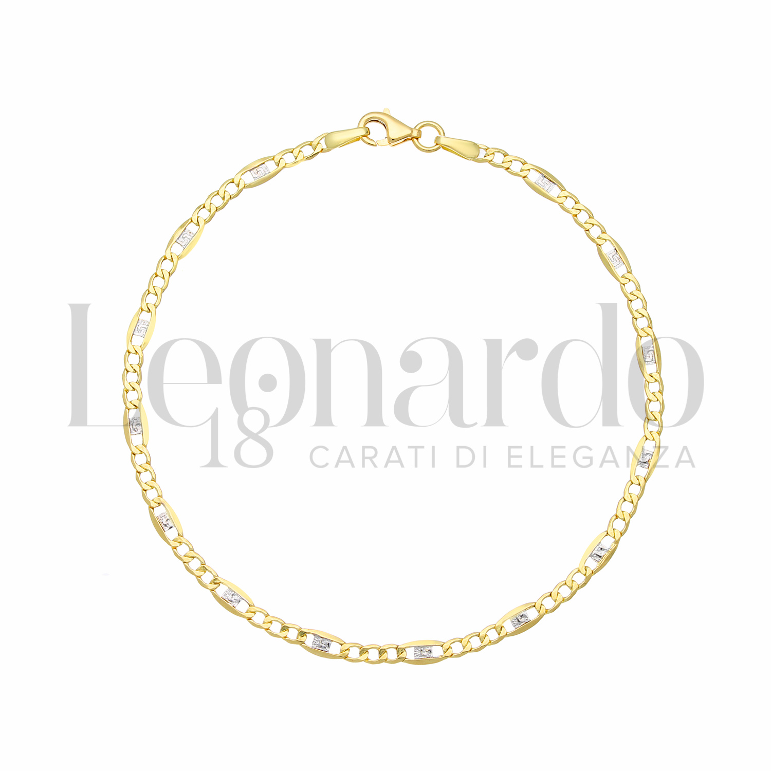 Bracciale Catena Piatta 3+1 , Filo 100 a 19 cm, finitura Lucida in Oro Giallo e Oro Bianco