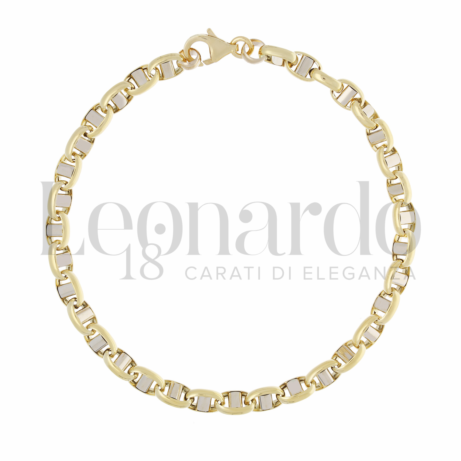 Bracciale da Uomo Maglia Marina, Filo 200, in Oro Giallo e Oro Bianco.